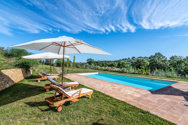 Conveniently located in the center of Tuscany, nestled in the midst of one of the most important 18-hole golf courses of this region, Villa Distinta is also only one-hour drive from the major cities of Pisa, Florence and Siena. This beautifully restored villa is surrounded by majestic manicured greenery and offers grand iconic views of Tuscany’s rolling hills. The interiors of the villa are a reminder of the meaning of understated luxury which ensures to the guests a sense of serenity, comfort and style. If you dreamt to experience a “Tuscan” villa, you have to consider Distinta one of the best choices. The typical architecture dating back to 1890, accented by earthy tones, decorative wrought iron, cotto floors, arched brick pillars and stone walls, will serve to amplify your enjoyment of Tuscany. CIN: IT048027B4EG43PEDE