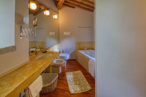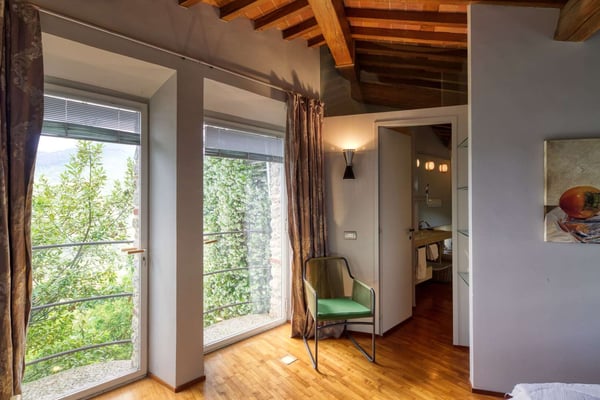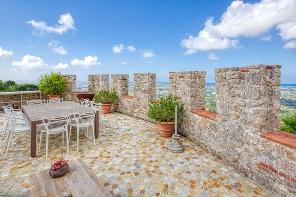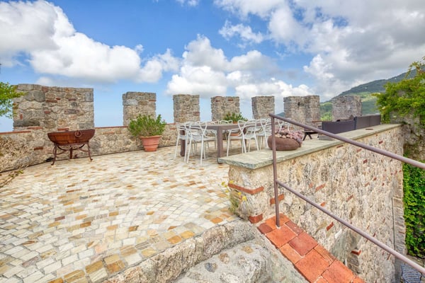 Perched atop a Tuscan hill, Villa La Rocca is part of a meticulously restored medieval castle, offering a unique blend of historic charm and modern comfort. This enchanting property accommodates up to six guests, though it is less suited for children or elderly individuals due to its stairs and layout. Guests will park in a private garage located approximately 300 meters from the villa, where a dedicated vehicle will transport them directly to the entrance. The main house features a spacious lounge with a cozy wood-burning fireplace and two luxurious bedrooms with en-suite bathrooms. One boasts a serene soaking bathtub, while the other offers a glass-enclosed shower with stunning panoramic views. Adjacent to the main house is an annex, which includes a sitting area and an additional bedroom with an elegant marble bathroom. The outdoor space is equally captivating, with a beautiful swimming pool and a terraced garden adorned with fragrant lavender, vibrant roses, and citrus trees. These terraces provide the perfect setting for al fresco aperitifs and dinners. Additional amenities include wireless internet access, satellite TV, air conditioning, and a black coffee percolator. Conveniently located, Villa La Rocca is just a 10-minute drive from the pristine sandy beaches of Pietrasanta and Forte dei Marmi, making it an idyllic retreat for a truly memorable Tuscan escape. CIN: IT046005C27ZYLQ65Y