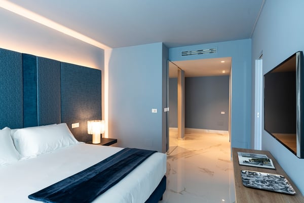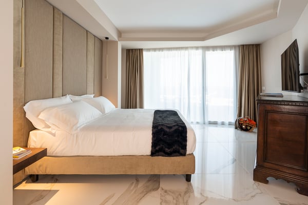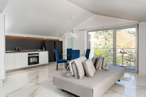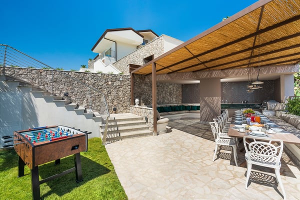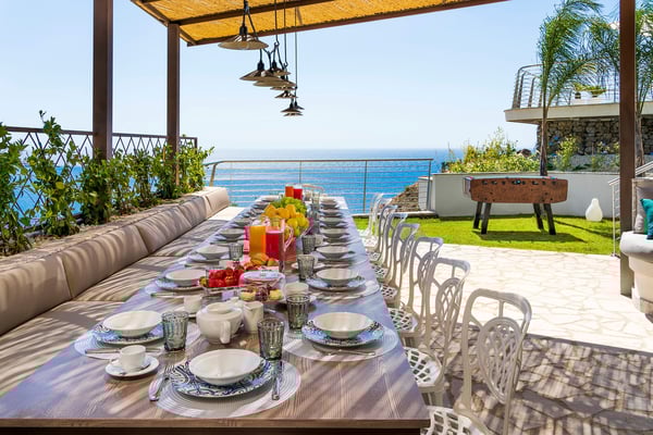 Baya Bella is a luxury villa with private pool near Giardini Naxos and Taormina. Located on a hillside with breathtaking views over the sea, this panoramic property features a saltwater pool and spacious, well-equipped terraces. Guests staying at Baya Bella can enjoy a relaxing, comfortable holiday, exclusive services and plenty of space with ten double bedrooms, all with TVs and luxurious en-suite bathrooms with shower, and large common areas, including four living rooms with kitchens, dining and sitting areas and a wellness area with gym, sauna, massage room and multi-sensory shower. Designed and built to provide the ultimate comfort, this contemporary villa spreads over four levels and comes with air conditioning, Wi-Fi, bluetooth speakers, washing machine, dryer and 5 dishwashers. From this charming property, just a few hundred meters from the sea, can be easily reached by car Taormina, the beaches at Giardini Naxos, Isola Bella and Mazzarò, the villages on the slopes of Mount Etna, Catania, Syracuse and Ortigia. CIN: IT083032C2LEV8QX6Q