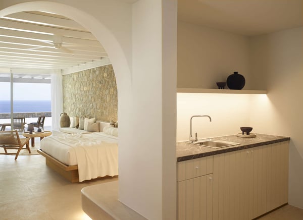 • To Mykonos Town: 10 km • To Mykonos Port: 5 km • To Mykonos Airport: 9 km • To closest beach: 1 km