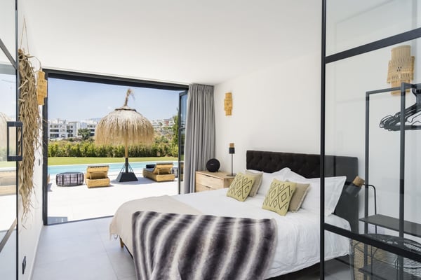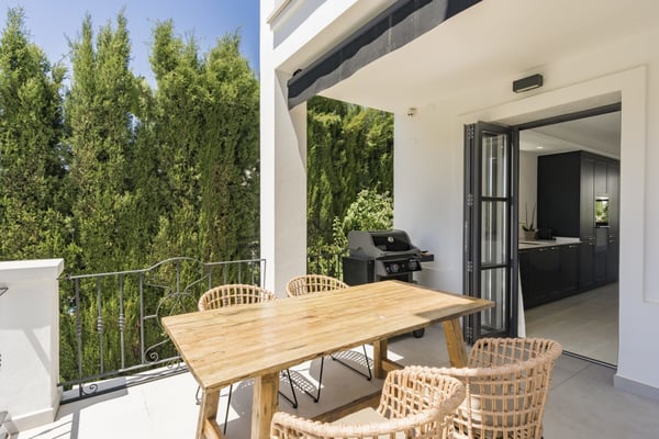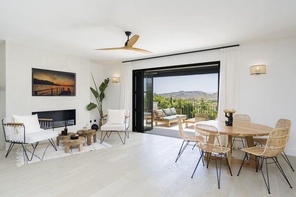Newly refurbished to the highest standards, this impressive 6- bedroom designer villa sits amongst beautifully landscaped grounds comprising a tropical garden, multiple terraces and a large shaped pool, just minutes away from Benhavis, Marbella, Puerto Banus and several top-class golf courses. This brand-new villa is located in the exclusive urbanization of Puerto Del Capitán only a few minutes’ drive from Benahavis, Marbella and Puerto Banus. The community is central to amenities and is also surrounded by prestigious golf courses including Los Arqueros, La Quinta, El Higueral, Guadalmina, and Los Naranjos. This stunning contemporary six-bedroom villa recently enjoyed a complete refurbishment to the highest of luxury standards. It features a beautiful arrangement of landscaped design with a tropical garden, brand-new Italian porcelain terraces, external security and illumination system, a large recreational lawn area, and a new reformed swimming pool. The interior areas are fully furnished with chic Scandinavian-inspired decor with glass features, while the architecture incorporates touches of Andalusian essence for extra character. Further features include engineered wood flooring, an electrical and LED lighting system, and heat & cool air conditioning system for optimal comfort.