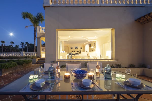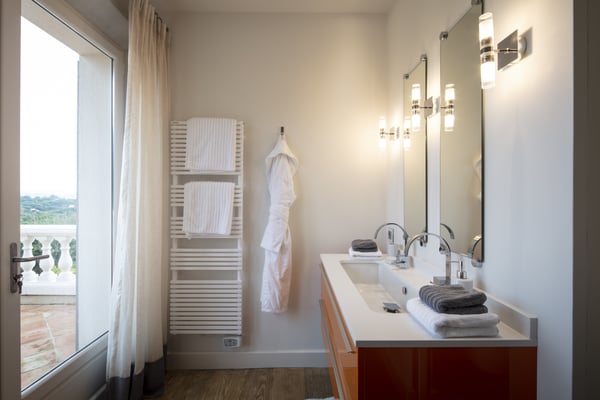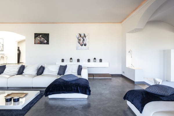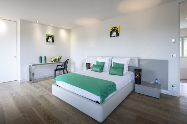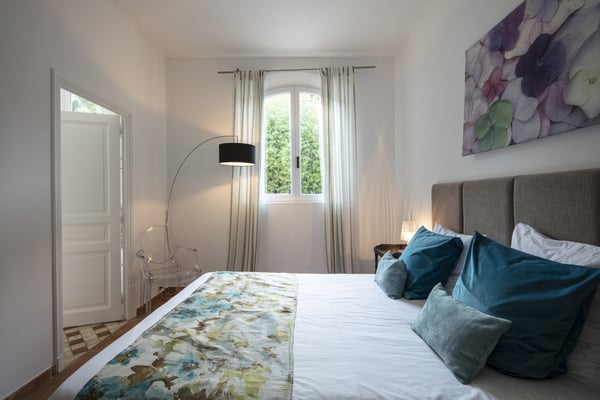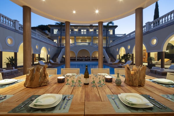 Majestically surrounded by a manicured garden adorned with water fountains and palm trees just a three minute drive from Pampelonne beach clubs, this grand French Riviera villa with heated pool and sea views provides luxury accommodation for large groups of up to 16 people who will enjoy the service of a private Michelin-trained Chef at the guests' disposal during their holiday. Part of a large private estate in the heart of Saint Tropez, Villa du Roi is spacious and airy and offers various chill-out areas both indoor and outdoor. Benefitting from seven large en-suite guest bedrooms and an additional eighth double bedroom in a separate apartment, this impressive villa with lovely views over the bay of Saint-Tropez is sure to help create magical holiday memories for the most discerning of travelers.