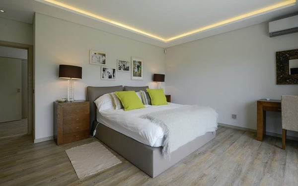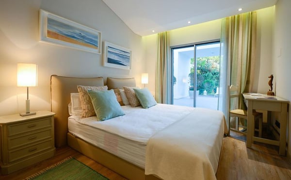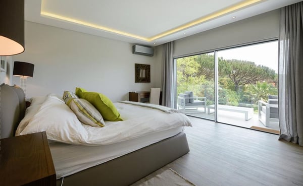 This south-facing villa was completed in early 2016 to the highest standard, with a beautiful garden and stunning views of the sea from the roof terrace. It has electric shutters, underfloor heating, air conditioning, Wi-Fi internet, cable TV, and a barbecue. Accommodation includes the open-plan living and dining area with an open kitchen (which has Bosch appliances and an American-style fridge/freezer). Large sliding doors lead out to the pool terrace and garden. Outside guests will enjoy the pool (8m x 4m approximately, which can be heated at extra cost), a large garden with seating areas, a dining terrace, and a barbecue.