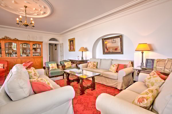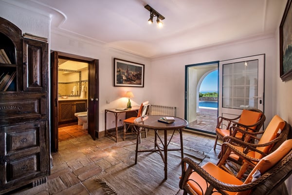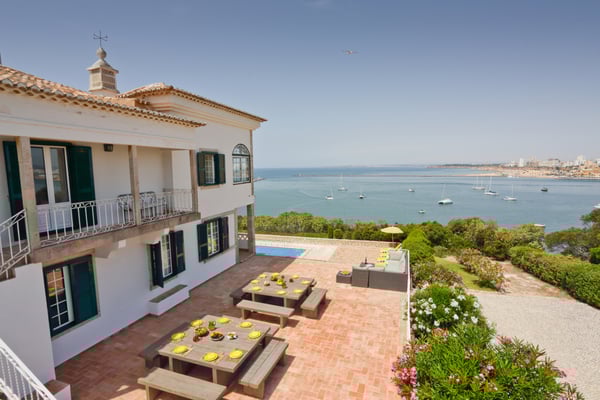 The grounds of Casa Largo have some unprotected drops from various terraces and around the swimming pool. Young children must be supervised at all times. Casa Largo faces west over the bay of Lagos and towards Sagres and the setting sun, enjoying magnificent views from various terraces at different levels, set up for eating outdoors or just chilling. It has a private swimming pool (heated on request) and the beach is only a few minutes walk away. The bedrooms are spread over three floors, with a lift servicing each level. The main drawing room with sea views opens onto an extensive terrace and boasts a beautiful grand piano; there is a separate television room; and a downstairs bar and pool terrace, which also has a poolside shower. Outdoor meals or sundowners don’t get much better than this - the view is of fishing boats passing in front of the house and yachts making their way to and from the marinas, whilst the well-known Algarve resort of Praia da Rocha can be seen across the wide estuary. The rear of the property looks onto the Monchique mountain range. Quiet and charming Ferragudo is undoubtedly one of the gems of the Algarve coast and we strongly recommend a walk along the beach to the small restaurants quayside where you can get delicious fresh fish grilled on a charcoal brazier. There are also many golf courses, located within a short drive away.