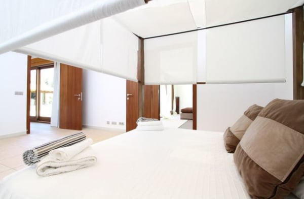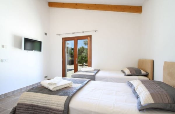 Beautifully surrounded by lush woodland, and set in the expansive countryside between the picturesque town of Pollenca and Port de Pollenca, this spacious, one-storey villa is elegant and refined and provides a pleasant degree of privacy and seclusion for a relaxing holiday on the island of Mallorca, for a family or a group of friends. Renowned for its quaint old town and its nearby Port, Pollenca is one of the most desirable places to rent a holiday property on the lovely island of Mallorca. So you get the best of both worlds! There’s a touch of ‘hotel chic’ about this superb holiday villa, characterized by cool, contemporary features and attractive décor. Having all the accommodation on one floor means this house lends itself to easy living and is suitable for guests of all ages. In fact, the property delivers a lovely spacious flow of living space dominated by the attractive, open plan living and dining area. Separate and across the way you’ll find a pretty two-bedroom ‘casita’ with a double and a twin bedroom that share a bathroom. Please note that the twin bedroom does not have direct interior access to the bathroom and requires you to either walk through the double bedroom or via the outside. It is ideal for a couple with up to two kids using it as an annex room. There’s a chill-out space too, a covered terrace with pretty dining furniture, as well as a breakfast terrace on the west side of the villa. Beautifully landscaped garden planted with mature trees and ample lawn areas, private heated pool (illuminated at night), sunbathing areas and outdoor shower. Covered terrace with barbecue area and summer kitchen with al fresco dining facilities. Children's playground area with swings and a table tennis. Automatic irrigation system, small gymnasium and ample parking space.