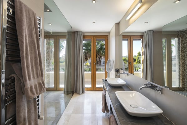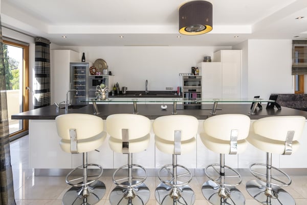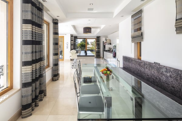 Conveniently situated within easy reach of the sea and all amenities in Quinta do Lago, this modern five bedroom villa is equipped with all comforts and facilities for a luxury holiday in the Algarve, ranging from a private heated pool, home cinema, a games room with bar and pool table, five en-suite bedrooms and outdoor terraces for alfresco dining in your own private garden.