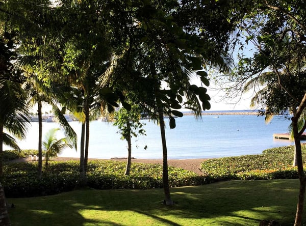 All guests must register with the Casa de Campo Concierge office, and for a small daily fee ($30 per adult per night & $15 per child per night), are granted access to resort areas and amenities. Casa de Campo Resort facilities and amenities include golf courses ($), the fitness centre ($), racquet center ($), restaurants ($) and bars ($). Contact Rental Escapes for more information about pricing. This beachfront villa boasts a beautiful one-acre lush tropical garden leading to its own 60-meter private beach. The garden has several outdoor seating areas with ocean views, an infinity pool plus two gazebos, one open-air with formal dining for 10 guests, and a second gazebo that can be closed with air conditioning and TV. The villa also benefits from a living room, formal dining area, and interior turtle garden, plus a kitchen and separate laundry and staff quarters. Accommodation comprises five bedrooms and five and a half baths. The master bedroom is upstairs and has a king-size bed, desk, lounging area, en-suite bathroom, and terrace. A further guest bedroom upstairs has a king-size bed and en-suite bathroom and terrace. The three downstairs bedrooms have two queen-sized beds, en-suite bathrooms, and their own terrace with direct access to the garden. All bedrooms have air conditioning, ceiling fans, TV, hairdryer, and electronic safes. All have direct access to decks and the garden.