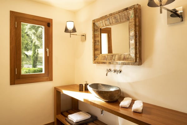 Nestling amidst a marvellous 50-acre private estate in northern Mallorca this luxury villa boasts an incredible charm both inside and outside - with 5 elegant bedrooms, far reaching views over the Bay of Alcudia and the Tramuntana mountains, a heated salt-water pool and a shared tennis court this villa is perfect for a family holiday on this attractive Balearic island The private estate this villa sits in comprises extensive forests, vineyards, olive and almond trees, offering countless opportunities for hiking and cycling. The beaches and most of the island's places of interest are within easy reach, making this villa ideal for those seeking blissful seclusion in a private, exclusive oasis but with easy access to the coast, town amenities and airport. This elegant property boasts a splendid heated, salt-water pool with a large decked sunbathing area and a stunning vista all around, moreover, a tennis court, a basketball court and table tennis shared with the sister property, Villa Carta, are designed to keep guests amused whilst outdoors, whereas indoors the entertainment continues with a billiard table and home cinema. Many spots are created within the spacious grounds for relaxation, dining al fresco or just soaking up the surrounding beauty of this verdant island. Mature gardens stocked with mature palm trees, olive and almond trees and lawn areas. Pool house with barbecue, large picnic table, fireplace, wood oven. Private heated salt-water pool with Roman-style steps, large, decked sunbathing area. Shared tennis court with sister property, table tennis, basketball, lounge corner. Several natural stone benches. Covered parking.