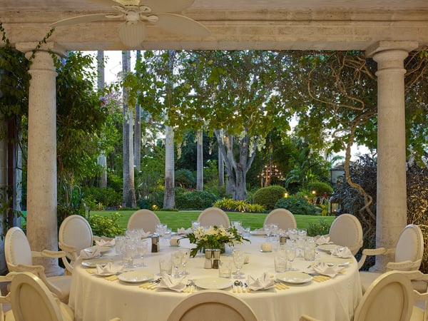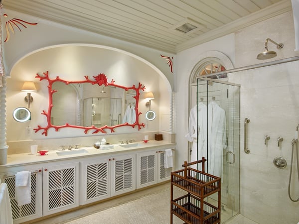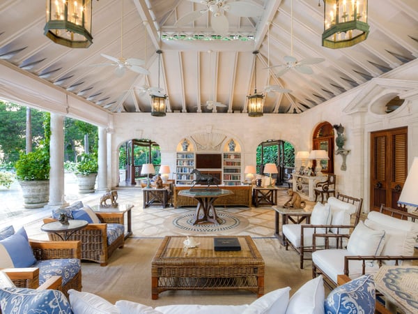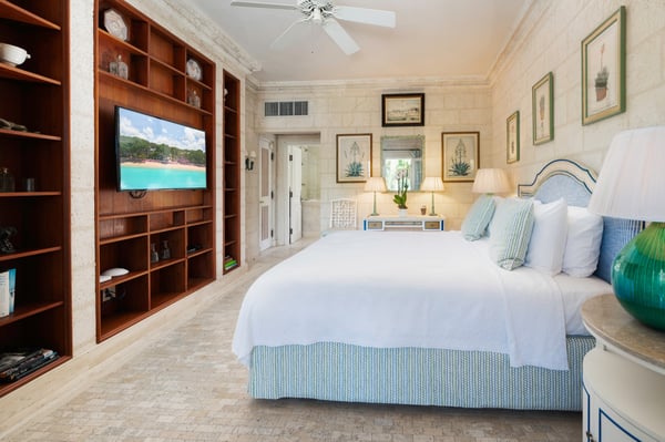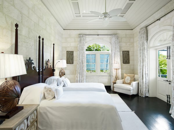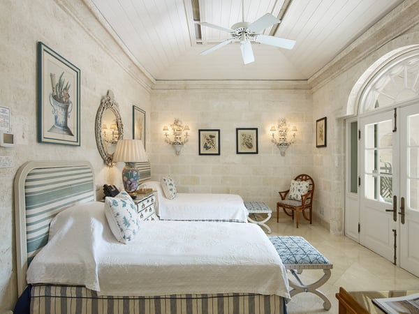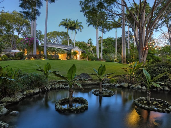 Guests staying within the world-famous Sandy Lane Estate will have complimentary access to all Clubhouse facilities including beach chairs, umbrellas and tennis courts. Staying at Laughing Waters is a getaway unlike any other. Whether a large group of friends or a multi-generational family, guests can comfortably spread out across three separate buildings: the Main House, Guest Cottage, and Great House. Features quintessentially Caribbean architecture from the mastery of Larry Warren, which melds with finer design-minded details – plush furnishings, seashell-adorned curtains, imported linens, bold chandeliers, and soothing water features – to create an inviting yet lavish experience for all. Upon entering the Main House, you’ll reach the most coveted area of the estate—the outdoor pavilion. Picture lounging by the pool with cocktails in hand, enjoying the big screen in a plush, open-aired entertainment space, and being served informal meals in an eclectic treehouse dining area! Secured wireless internet access is accessible from anywhere on the property, and Bluetooth-enabled surround sound allows you to set the mood for any occasion. Travelling with children? A fully outfitted kid’s playroom is tucked away nearby, where nannies can care for your little ones while you relax. Sandy Lane beach is also mere steps away where private, shaded loungers are readied every day. There, you can stroll over to the Beach Club Bar for a refreshing drink or call on your butlers. The beauty of Laughing Waters is you can be as secluded or as social as you choose. The three-story Main House offers 8 bedrooms with full en-suites, complete with central air conditioning and large walk-in closets. Of these, a few master suite options include separate living areas, secluded patios, sunlit soaking tubs, and other peace-inducing amenities. On the other side of the estate, a separate Guest House offers another four en-suite bedrooms. It includes indoor-outdoor dining and living areas, a fully-equipped kitchen, and a tucked-away office for those who need to get work done. Between the Main House and Guest Cottage are expansive Asian-inspired gardens, koi ponds, and weaving walking paths brimmed with lush, exotic plants and towering palms. These lead you to the property’s Great House. At Laughing Waters, this is where formal dinners are hosted, champagne glasses clink, and all-night laughter fills the air. It’s also where you can gather for pre-dinner drinks in a cozy Art-Deco bar or host an impromptu movie night in the cinema. Balancing out all that fun with some fitness is easy in the fully-outfitted gym. Just outside the Great House, you’ll also find a large, open grassy area, perfect for morning yoga or mediation sessions. Here at Laughing Waters, no details are spared in curating an exceptional getaway. For those requiring extra discretion, a separate private gated entrance at the top of the property is available. Another three well-appointed, two, three and four-bedroom homes can also house travelling staff in your party.