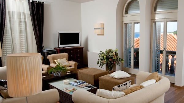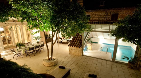 Built in 1619, this unique property has been fully restored several times and transformed into a chic villa to welcome ten guests in five luxurious en suite bedrooms, a large open plan living area with a library, fireplace, well-equipped kitchen with dining area, private wine cellar and a large terrace with a Mediterranean garden surrounding the villa. Thanks to the glass panels and optional pool heating, the versatile swimming pool can be used both indoors and outdoors. Further superb luxury features comprise the Spa area which includes a Jacuzzi, a sauna and a massage table. Hvar’s town's historic heart is on your doorstep, with its lively Riva promenade and fortified harbour. Luxury yachts and sailboats embellish the waterfront just metres away from the villa and the 16th-century fortress watching over the popular port and the surrounding Pakleni Islands. Terrace and garden with lemon and orange trees, scented lavender and rosemary. Private heatable indoor/ outdoor pool (with glass panels opening up depending on the season; ladder) with sunbathing area furnished with sun loungers. The outdoor dining area is perfect for enjoying al fresco meals or an evening cocktail under the stars.