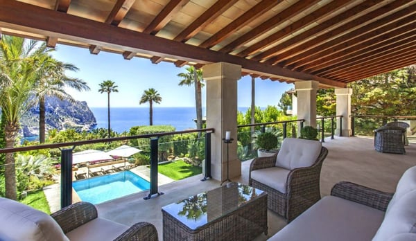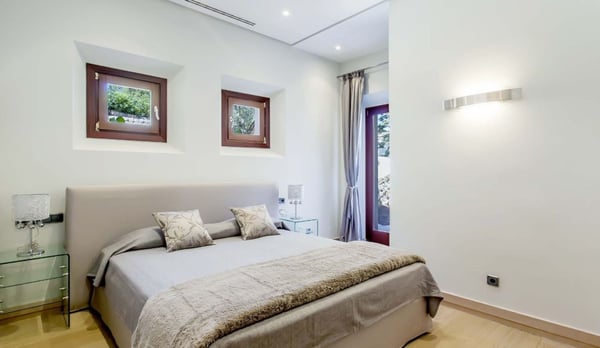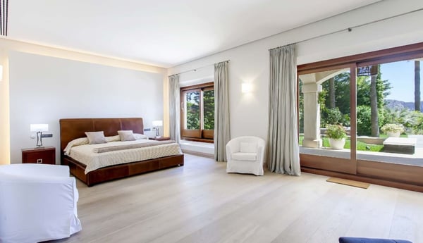 Part of an exclusive residential domain in Port Andratx on Mallorca's southwest coast, this luxury villa with pool is surrounded by an enchanting lush, Mediterranean garden affording a spectacular vista over the shimmering sea. 24-hour service is operational at all times with a security guard discreetly at the entrance to the complex day and night, for the guests' peace of mind. With its exciting food scene, its chic marina, its quality restaurants and trendy shops, as well as its 18-hole golf course Port Andratx has a lot to offer to visitors and therefore considered one of Mallorca's most renowned coastal resorts. The area is also well equipped for boating, scuba diving, snorkeling and all sorts of water sports with chartering available in the port. Nearby beaches include: Camp de Mar, Peguera, Santa Ponsa, St Elmo Beach, Portals Vells, Illetes and Cala Fornells. The villa is on a large plot of private land comprising a lush Mediterranean garden and lawn areas. Outdoor terraces with seating and al fresco dining, BBQ. Breath-taking sea views. Private pool (Roman steps, water feature), large sunbathing area furnished with sunloungers and parasols. Parking within the grounds under a large car port.