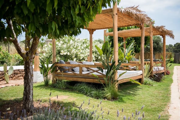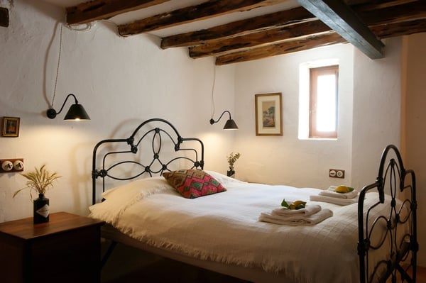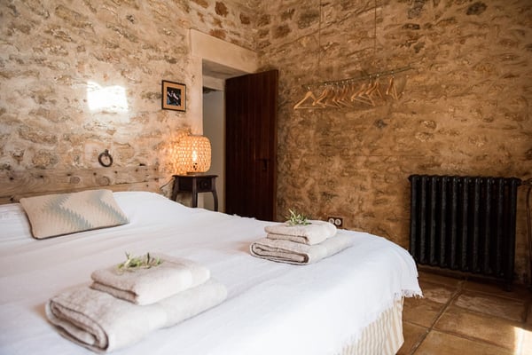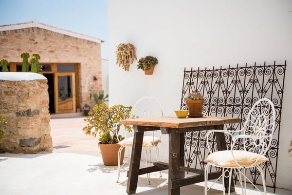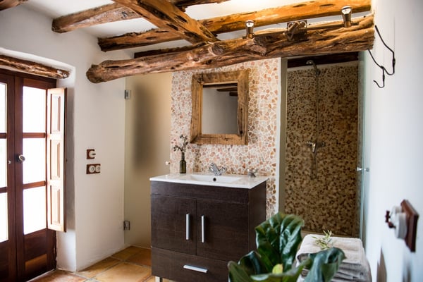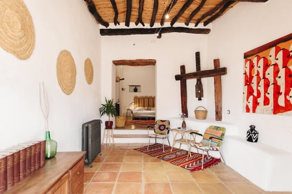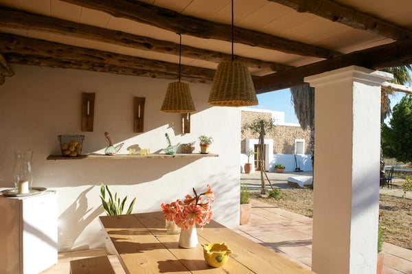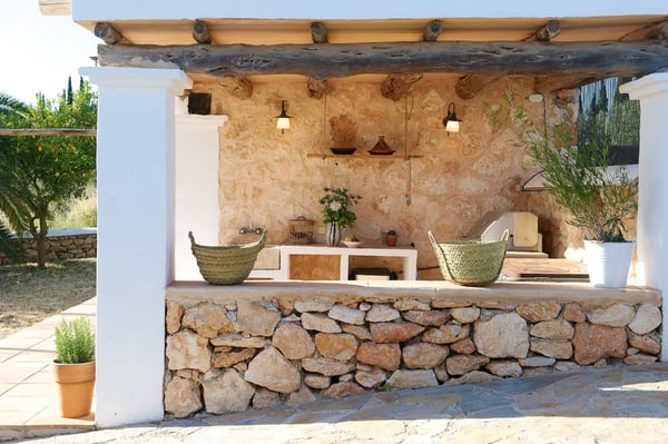 Impeccably restored with stylish contemporary interiors, this is a truly unique and authentic property steeped in history and brimming with Ibicencan character. Enjoy the beautiful vista from the glorious pool or hide away in the secluded outdoor chill-out areas, bask in the sun or snooze in the shade, dine in the barn or eat al-fresco: you will be spoiled with choice during your holiday on the island of Ibiza! Lush mature gardens comprising olive & palm trees, fruit orchards, Mediterranean shrubs and ample lawn areas. Large internal courtyard with seating areas and central feature fountain. Areas for al-fresco dining and barbecues. Large renovated farm building adjacent to the patio with large summer lounge area and the professional summer kitchen. Long private pool (Roman steps: Jacuzzi area), sunbathing area, day beds.