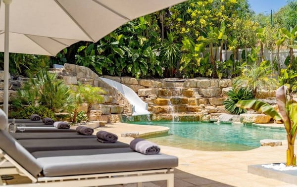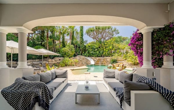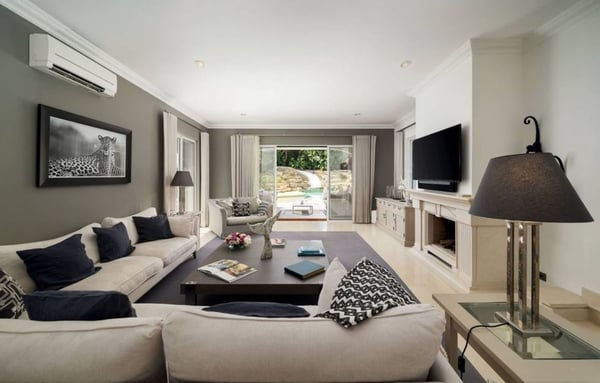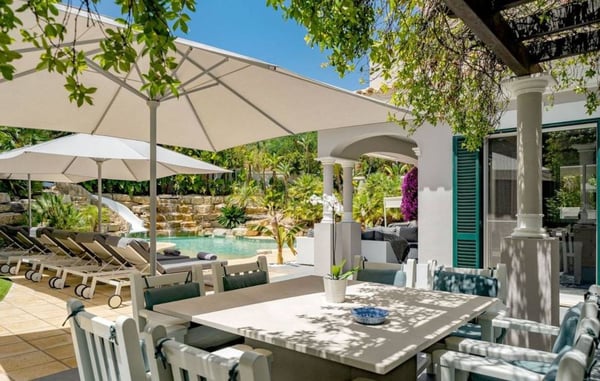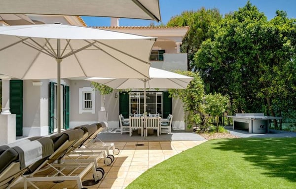 This six-bedroom villa is elegant and luxurious, specifically designed to enhance your holiday experience in this beautiful region of Portugal. Open plan indoor living areas and large multiple terraces outside provide plenty of space for family gatherings and al fresco dining or relaxing moments by the splendid resort-style pool with cascade and ornamental rocks. This region is perfectly geared up for families and offers long sandy beaches and outdoor sports opportunities. Restaurants in Vale do Lobo Praça are within a 10-15 minute walk along the beach, whereas some renowned golf courses in Vale do Lobo and Quinta do Lago are within a short drive from your villa.