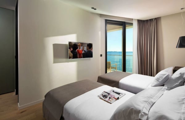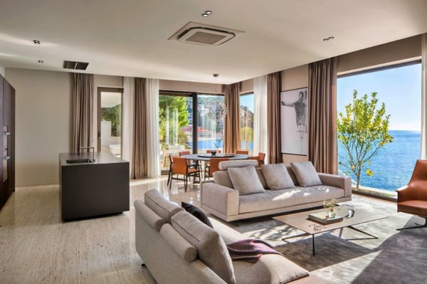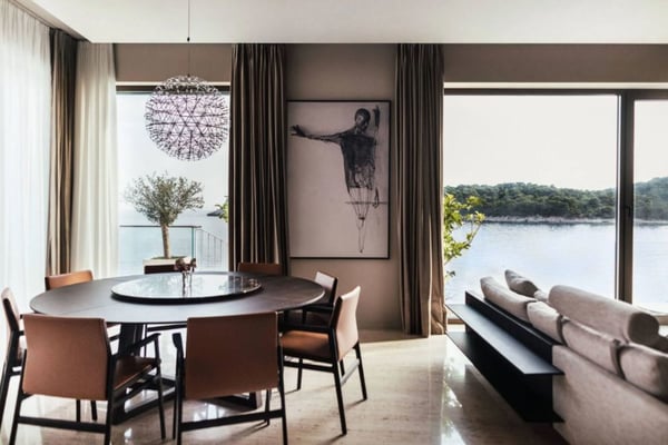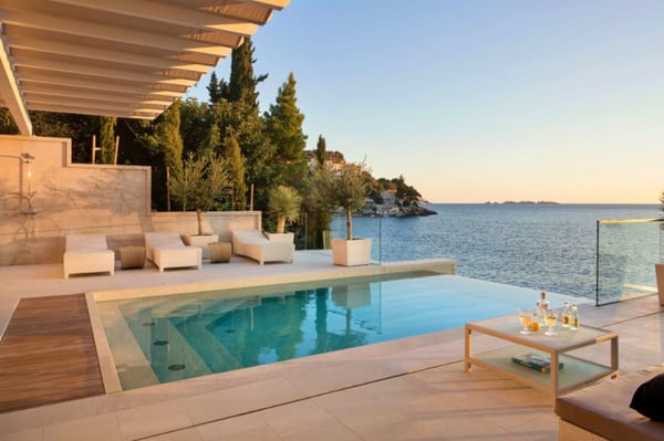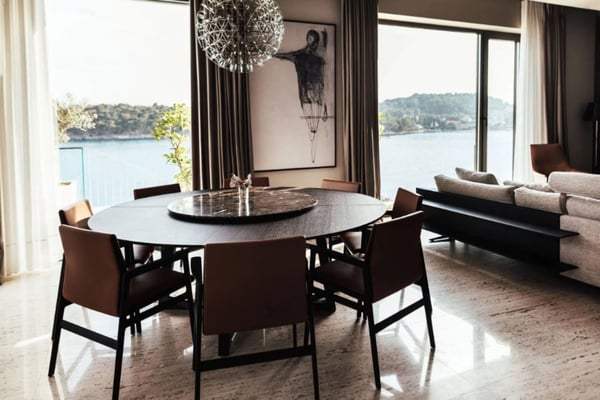 This seafront villa looks out over Zaton Bay, a small coastal settlement just outside Dubrovnik with lovely pebble beaches and Mediterranean surroundings enhanced with beautiful scenery. This attractive property comprises five en-suite bedrooms to accommodate ten guests, an infinity swimming pool, private sea access, an outdoor dining area with barbecue, a sauna, and an internal elevator connecting all three floors of the villa.