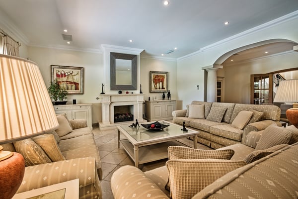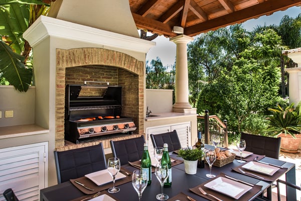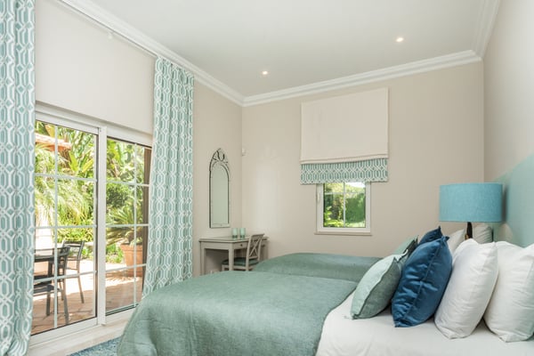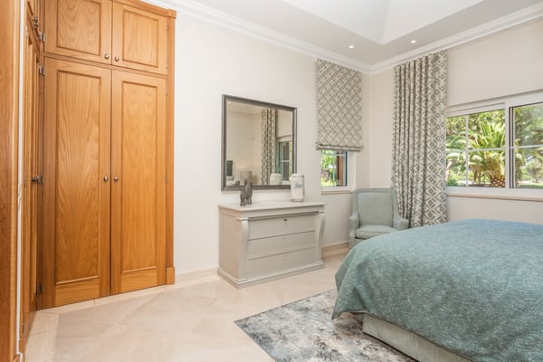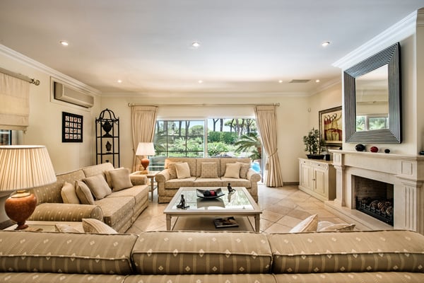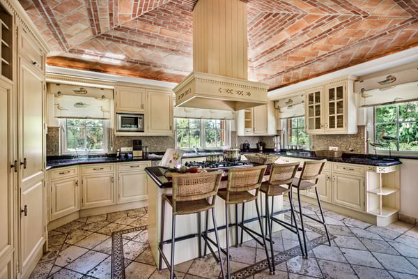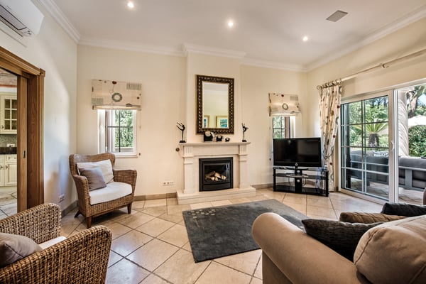 Villa Isabela has a spacious and comfortable dining room and lounge, fireplace, door to terrace, and pool. Comfortable TV room, fireplace, TV with English channels, doors to garden, sofa and breakfast table. Additionally, a fully equipped kitchen for up to 10 guests. The exterior grounds have manicured gardens with mature trees, large lawn areas, and a private heatable pool on request at an extra cost.
