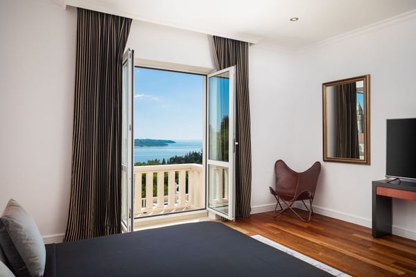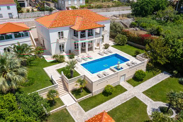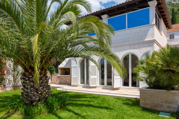 Luxury property La Villa is located in the picturesque seaside village of Trsteno. Just below La Villa, you will find the lush Arboretum Trsteno, the region’s oldest botanical garden, and the Game of Thrones stand in for the heavenly gardens of King’s Landing. The property lies only 18 Km away from the world–famous city of Dubrovnik. The city's UNESCO World Heritage Site status is well deserved, with its well-preserved walls boasting magnificent views of the mesmerizing Adriatic Sea. Today, you can explore the city's rich history through its beautifully preserved architecture, including ornate palaces, churches, and monasteries. La Villa Dubrovnik is surrounded by a Mediterranean garden, palm trees, and cypress trees, covering a total area of 1400 m2. There's a residential space of 300 m2 spread across two floors—the ground floor and the first floor. With the stunning views of the clear Adriatic Sea, the villa features a private outdoor pool, two large terraces with indoor and outdoor dining, an outdoor barbecue and four parking spots. The air-conditioned villa can accommodate up to 12 guests in 6 double rooms, including 5 bathrooms. Five double rooms are in the main villa and one in the side annex. On the ground floor, a spacious dining room takes center stage, featuring a table for 12 persons. Right beside it is a fully, professionally equipped kitchen with a large island in the middle. On the ground floor, you can find three modern luxury rooms. One bedroom has an en suite bathroom and a shower, while the other two share a bathroom with a bathtub. On the upper floor, there's a living room and two primary bedrooms with a king-size bed, a private bath with bathtub and shower, a walk-in wardrobe and a small balcony. The living room leads to a spacious and covered terrace with a seating lounge, perfect for enjoying the sunshine and taking in the beautiful views of the Adriatic Sea and the Dalmatian islands. To the side of the house, the villa annex holds the sixth accommodation unit, including a bedroom with two twin beds which can be converted to a double, a bathroom with a bathtub and a shower. La Villa Dubrovnik is completely air-conditioned and heated. La Villa has wireless internet, satellite TV, a safe, smoke detectors, a fully equipped kitchen, a baby cot and high chair, a washing and drying machine, a garden, seating and lounge sets, terraces, balconies, an outdoor pool and services of a villa manager.