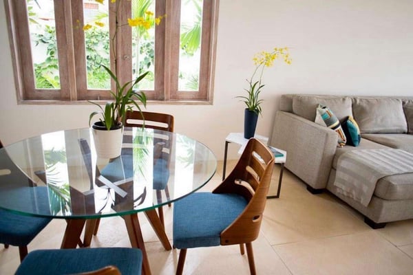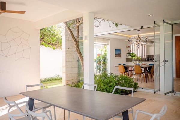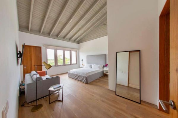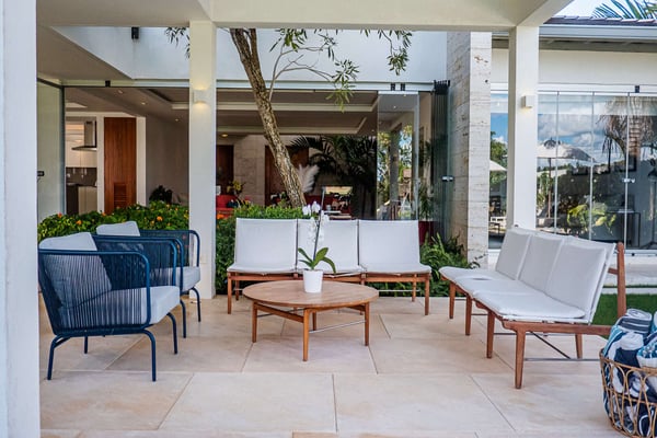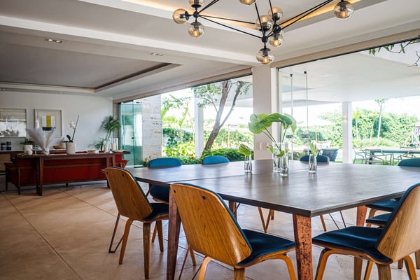All guests must register with the Casa de Campo Concierge office, and for a small daily fee ($30 per adult per night & $15 per child per night), are granted access to resort areas and amenities. Casa de Campo Resort facilities and amenities include golf courses ($), the fitness centre ($), racquet center ($), restaurants ($) and bars ($). Contact Rental Escapes for more information about pricing. Le Cheval is a stunning modern villa offering spectacular views of Casa de Campo’s Polo fields. Just a 5-minute drive from Minitas Beach, this elegant two-story retreat is perfect for creating unforgettable memories with family and friends. The villa’s contemporary design blends vibrant colors, natural light, and high-quality materials. On the ground floor, spacious living areas with folding glass doors seamlessly connect to the outdoor terrace, creating the perfect space for al fresco dining and relaxation. This level also features a fully equipped kitchen, a cozy TV room, and a guest bedroom with two queen beds. Outside, the villa’s lush garden is a true highlight. Enjoy the sparkling swimming pool, a barbecue area, and a charming picnic table nestled under two large trees—an idyllic spot for meals and gathering. The second floor hosts three beautifully decorated bedrooms, each with air conditioning and a private bathroom. The master suite features a king bed, a spacious walk-in closet, and dual showers, including one outdoors. The second bedroom has a queen bed and access to a private terrace, shared with the master suite. The third bedroom offers a king bed for additional comfort.
