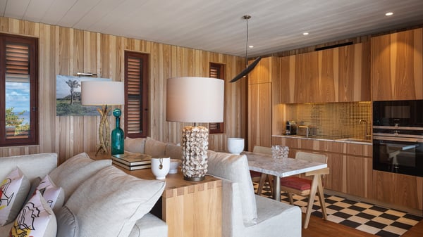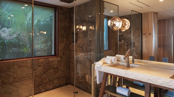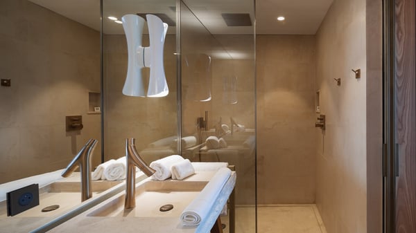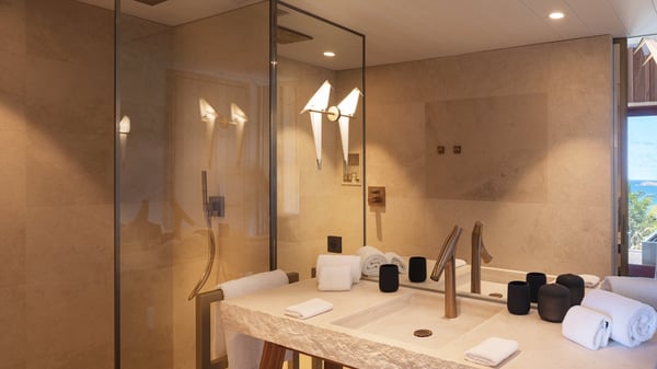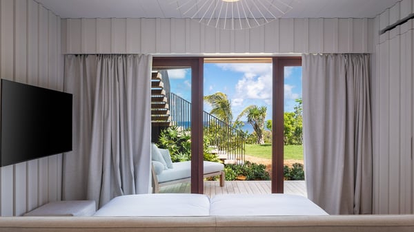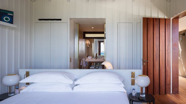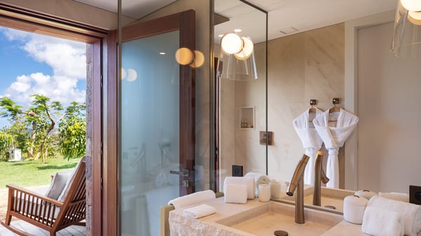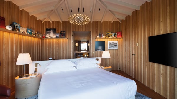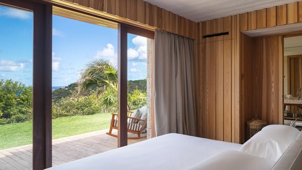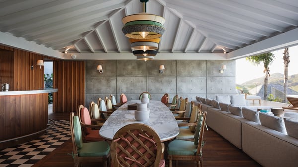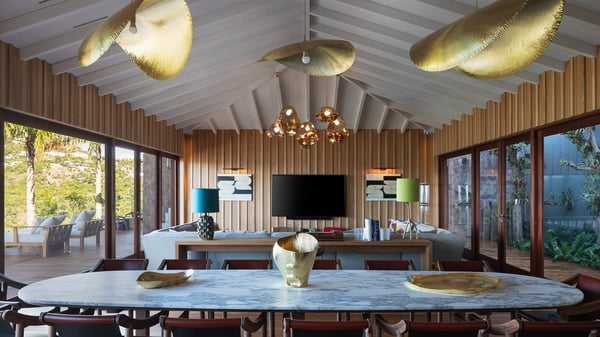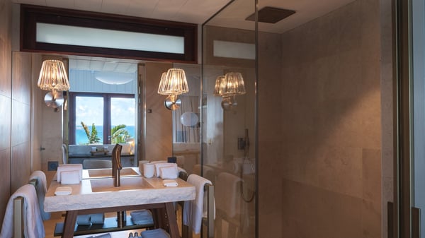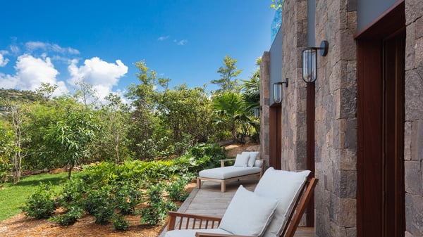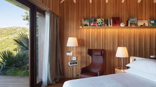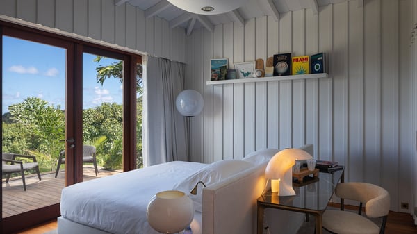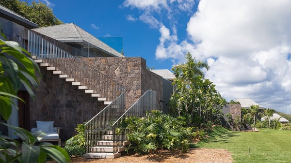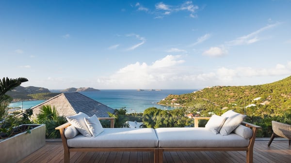 The vacation rental in St-Barth Villa Unik is a sumptuous property located on the heights of St-Jean in front of a stunningly beautiful panorama. This very exclusive vacation rental offers noble materials and inspired architectural style, making this ten-bedroom holiday house the privileged place in St-Barths for an unforgettable stay in front of the infinite ocean. Built over two buildings, villa Unik is a splendid contemporary-style property. The decoration by Philippe Starck creates a delightfully exclusive atmosphere in the heart of the beautiful environment. There is a fully air-conditioned living room furnished with sofas and colourful cushions. The indoor dining room is located close to the kitchen with a breakfast bar featuring a white and black checkerboard style. Onto the front, the large openings offer a breathtaking view over the ocean and the tropical garden planted with lush vegetation, while large windows also open onto the back of the villa, a true fresh island letting the trade winds blow in. For any events, a professional kitchen is available, whenever you wish to call upon a private chef. The front terrace offers a breathtakingly beautiful view over the ocean and the rolling hills. The luxurious furnishings make it a heavenly place to enjoy the Caribbean beauty. The 20m long, heated infinity swimming pool is surrounded by sunbeds, outdoor lounges and coffee tables in a very private atmosphere. Under the covered area, you’ll find a dining room with pastel-coloured chairs that can accommodate sixteen guests close to the cocktail bar. What’s more, a mosaic-covered jacuzzi is available for relaxing sessions in absolute luxury, under the lovely foliage of the Caribbean palm trees. Villa Unik consists of ten bedrooms with bathrooms and views over the ocean or the garden. Seven suites are in the main building, four of which are on the same level as the living room, and three on the lower level. The other three bedrooms are located in a separate building called "The Cottage," which features a checkerboard kitchen, a comfy living room and a second infinity heated pool. A cinema room and a fitness room are also at your disposal in this luxurious property, right in the incredible beauty of St-Barths.