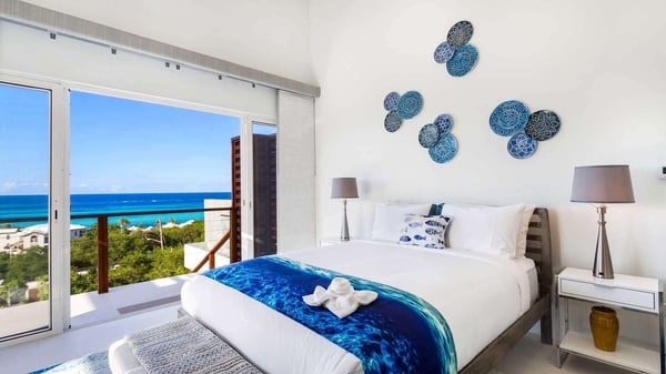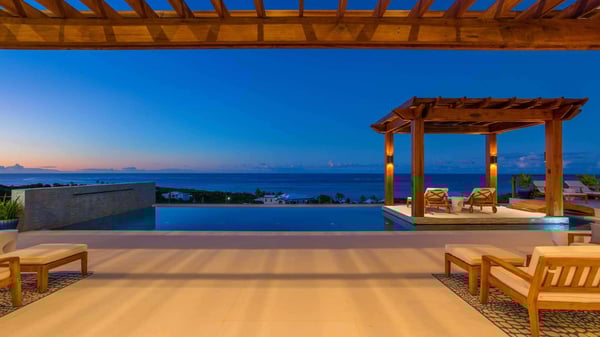 Dramatically situated on a hillside in Shoal Bay East, Alkera is an exquisite new luxury villa offering breathtaking views of one of Anguilla’s most famous world-class beaches. Guests can savor the intoxicating surroundings in total privacy from the villa’s pool deck and lounging areas or, with toes in the sand, enjoy the famous cafes and bars on Shoal Bay Beach - just a three-minute ride away. Shimmering white against Caribbean blue waters and sky, Alkera pairs modern architecture, expansive indoor/outdoor living space,s and multiple lounging areas to fully embrace the jaw-dropping location. Blurring the line between the deck and the stunning blue sea, a heated infinity pool dissolves into the horizon. Offering five en-suite bedrooms with ocean views, this perfectly appointed 10,000 square-foot property with gracious open living and dining areas is perfect for up to ten guests. Finely styled interiors reflect the incredible colour and feel of Shoal Bay. Personalized service, with a chef, butler, and housekeeper, makes Alkera the ultimate island retreat for the most discerning guests.
