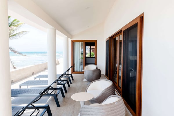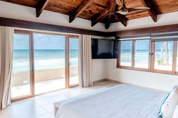 Please note that beach conditions are subject to natural changes caused by seasonal tides and erosion, which may affect the size, accessibility, and appearance of the beachfront. In one of the most beautiful areas of tranquil Playacar and as close to the beach as you can get, you will find Villa Brianna, a brand-new four-bedroom residence that will have you lounging on the terrace and enjoying the sounds of the waves. Unwind in spacious rooms and relish the simplicity of life by the sea in a home that combines tasteful design details to create a modern, bright look. From the spacious bedrooms to the beachfront plunge pool, Villa Brianna has many nooks that make it easy to relax surrounded by white sands. The waterfront terrace, with an outdoor dining area and a barbeque grill, is also perfect for intimate gatherings with a view. Each of the four bedrooms has king-size beds, while three of them have modern ensuite bathrooms. Also, the vistas from the balcony and the rooms on the second floor are a constant reminder of the closeness to the sea. The beach itself is one of the villa’s main features. The soft sands go for kilometres to the south, while if you venture north up the beach you will soon arrive at downtown Playa, where there are also countless entertainment options. The villa is located in Playacar Phase I, the residential neighborhood par excellence in Playa del Carmen, and just a 10-minute walk away from the famous Quinta Avenida.