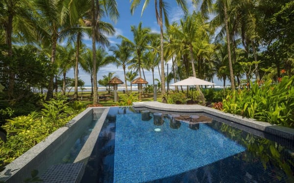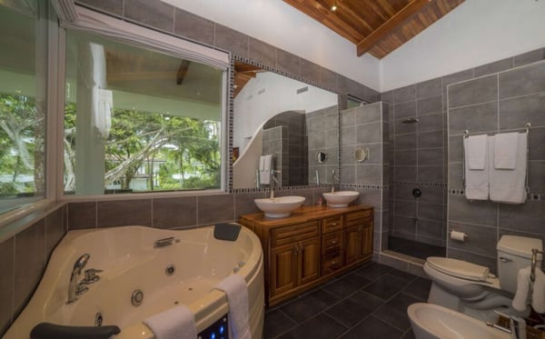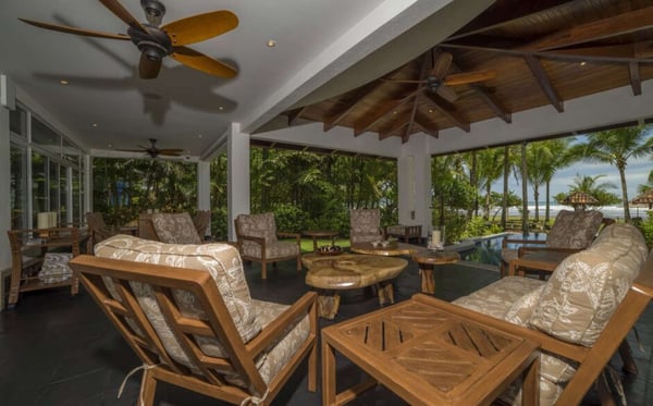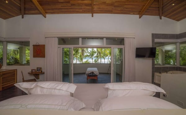 Villa Victoria is an exclusive beachfront luxury villa located in Esterillos Este. This privileged location assures privacy, indulgence and tranquillity as well as breathtaking beach views for guests who wish to enjoy a truly relaxing beach vacation in the heart of the Central Pacific Coast. Perfectly situated between Manuel Antonio and Jaco, guests of Villa Victoria enjoy the best offerings of each beach town and it’s outdoor activities and exotic wildlife observing opportunities. Villa Victoria embodies the true essence of a first-class tropical luxe home. With thoughtful details throughout the home, guests will enjoy the courtyard for outdoor dining, six spacious bedrooms, central air conditioning, luxury finishes, lush gardens, and a professional-grade gourmet kitchen and outdoor barbecue and covered beachfront dining, where you can grill to your heart’s desires, or allow for our Chef to delight you with their creations. Spaciously spread out over 6,500 square feet and showcasing a beachfront infinity edge pool with a swim-up bar, Villa Victoria will host your ideal tropical vacation experience. The home has been defined as the 'ultimate beachfront villa' providing the perfect layout and amenities for groups of up to 12 people. Those looking for an exquisite Costa Rica luxury rental should look no further-This designer villa has it all and is the perfect home base for an unforgettable Costa Rica vacation experience. Side by Side Rental Property, you can rent Villa Oceana, Villa Panacea and Villa Victoria all together to accommodate a larger group.