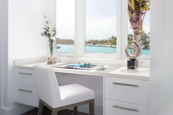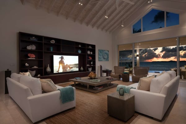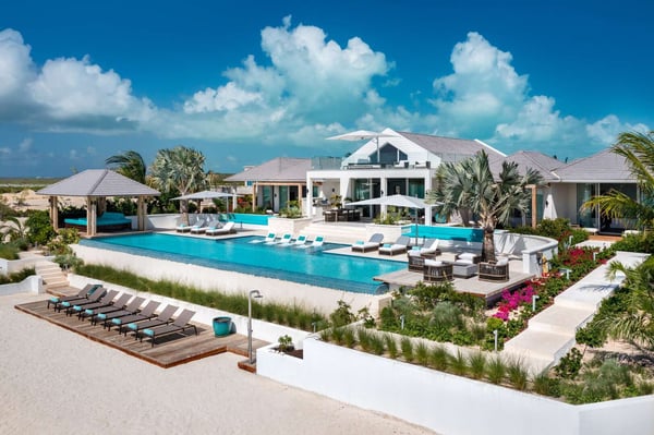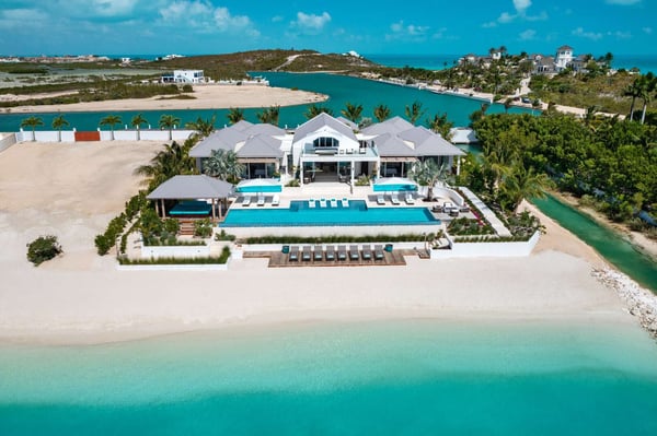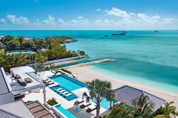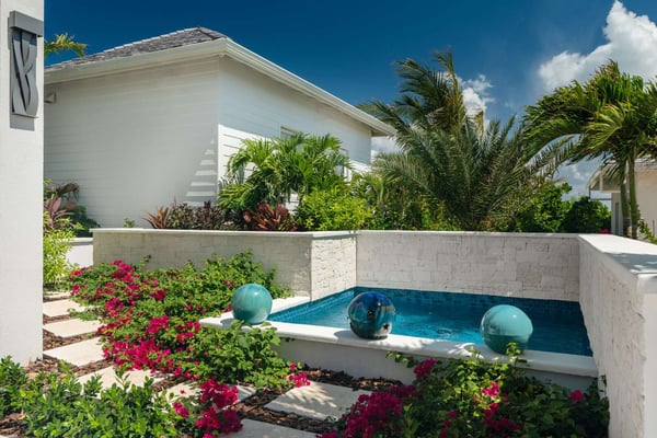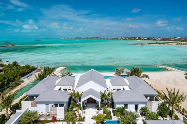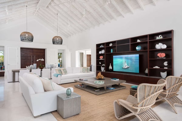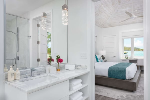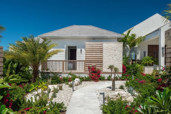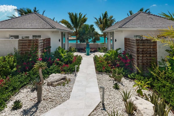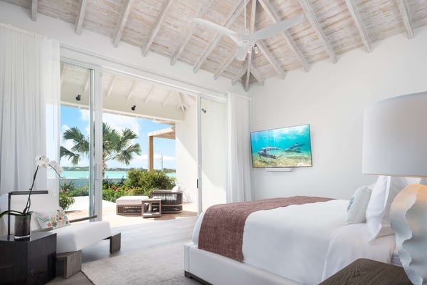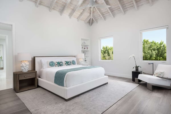 Comprising a main villa and two guest pavilions, perfect for groups of families or friends, Emerald Bay is approached through modern landscaped grounds, where a stone pathway winds its way past palms and cacti. An attractive water feature and bursts of bougainvillea catch the eye, offset by the natural wood and stone of the property's minimalist exterior. Interior features include a canopy-style indoor-outdoor dining area, and Emerald Bay also boasts ocean and water views from every single room and vantage point. The contemporary, sleek aesthetics and private location (access via a private road) offer up all the elements for a comfortable, chic and restful island stay. *The property is eco-friendly and smoking is not permitted anywhere on the grounds