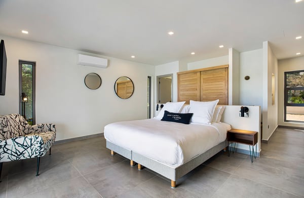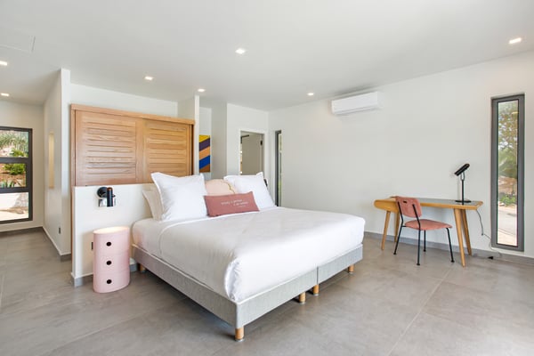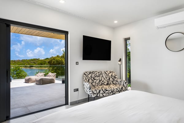 Introducing Villa Enjoy, this two-bedroom haven offers a breathtaking backdrop for an unforgettable getaway. Indulge in the comfort of individual private bathrooms for each bedroom, complete with outdoor showers, air conditioning, smart TVs, king-size beds, and secure safes. Step into the expansive, air-conditioned lounge area, equipped with a smart TV and a cutting-edge SONOS audio system. The well-appointed kitchen boasts an oven, microwave, dishwasher, fridge, and a Nespresso machine to fulfill your culinary desires. A practical laundry room with a washer and dryer ensures your stay is as comfortable as possible. Outside, a generously sized terrace beckons, offering both open and covered spaces to soak up panoramic views and indulge in relaxation. Immerse yourself in the infinity pool, relax under cooling ceiling fans, and set the perfect ambiance. A barbecue is also provided for memorable outdoor dining experiences. Adding to the allure of Villa Enjoy is a deck next to the lagoon, inviting you to immerse yourself in the magical surroundings and savor the beauty of the location. Maintain your fitness routine in the air-conditioned gym, and enjoy a pristine environment throughout your visit with daily refresh cleaning service (excluding Sundays and holidays). Nestled in the heart of the Lowlands, within an exclusive residential area, Villa Enjoy provides a tranquil retreat. Ideally situated on the shores of the "Grand Etang" lagoon, just a short distance from the magnificent Long Bay beach. The villa enjoys a convenient 13 minute drive from Princess Juliana International Airport and is also near Maho Beach, Mullet Bay Beach, casinos, spas, supermarkets, and restaurants, all reachable within a few minutes by car. Villa Enjoy is the sister house of Villa Wellness and can be rented together, offering a seven-bedroom accommodation option for larger groups seeking the ultimate St. Martin experience.