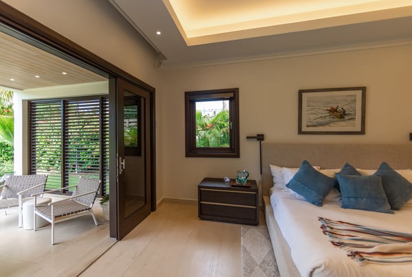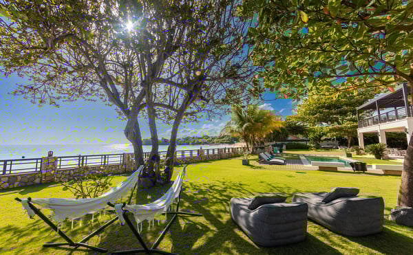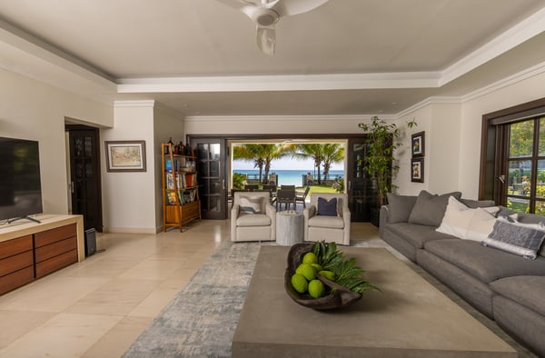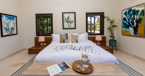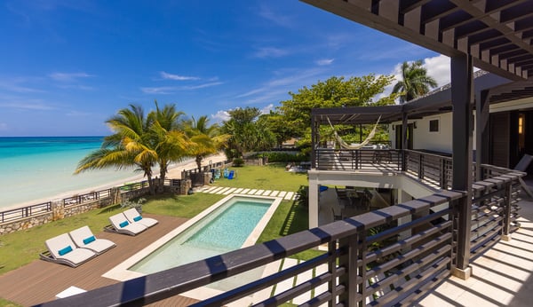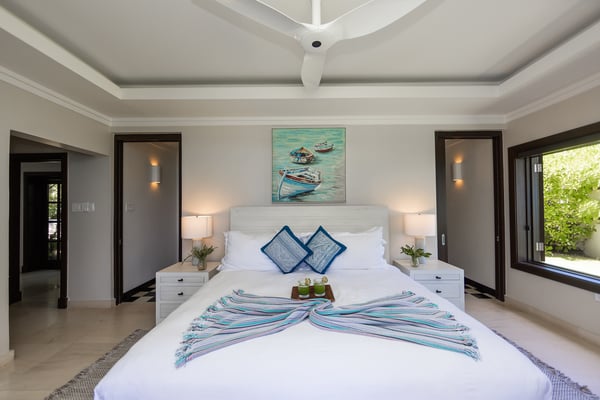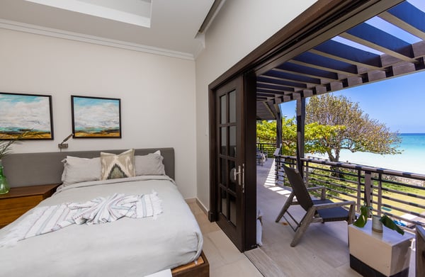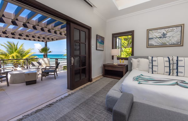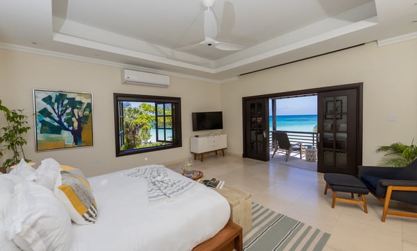 Sea Salt is the perfect family or friend’s getaway, situated on two beautifully cared-for lawns that nudge the golden sand half-moon beach of Old Fort Bay. There is a top-notch staff that will look after your every wish! The contemporary space is designed with a calm, restorative palette filled with Jamaican artisan work. As you enter the villa, there is shallow water surrounding the atrium for a quiet space for evening drinks, a dining room off the professional kitchen, and a sitting room and bar area that open straight to the outside terrace with multiple sitting areas and outside dining. There are two ground-floor en-suite bedrooms, all opening onto the terrace, and then three en-suite bedrooms on the upper level, which all open onto a long first-floor balcony overlooking the pool and beach, perfect for early morning coffee or late-night sundowners! The two cottages are fully equipped with two en-suite bedrooms each, the front bedroom opening onto a beach-facing terrace and a fully equipped kitchen and sitting room, which also opens onto the beach-facing terrace. There are multiple places to rest, relax, dine, and chat, all of them with a view of the ocean in front of the house.