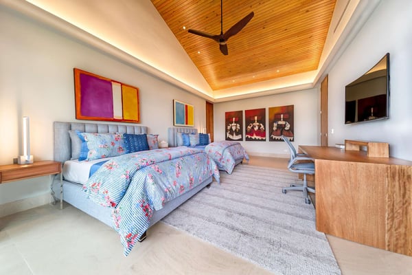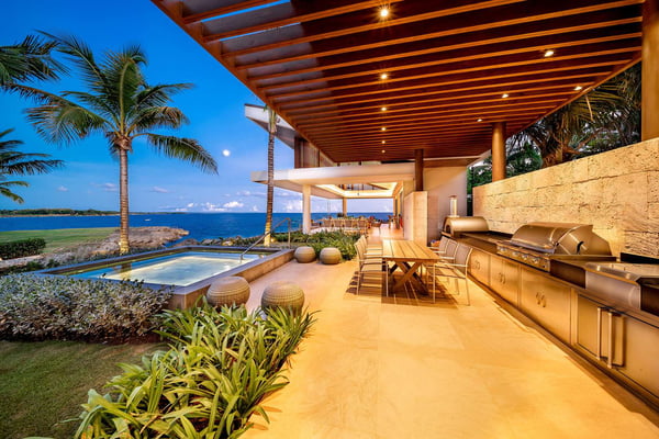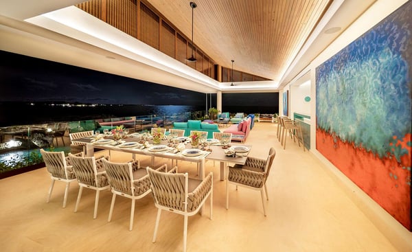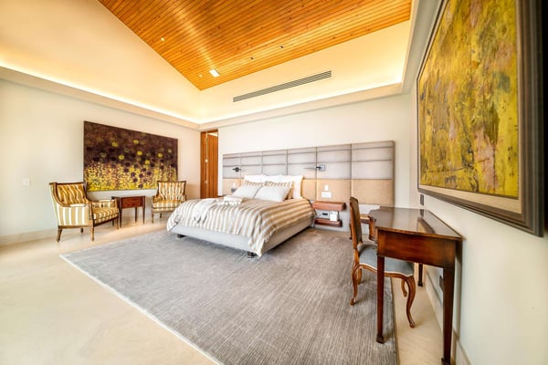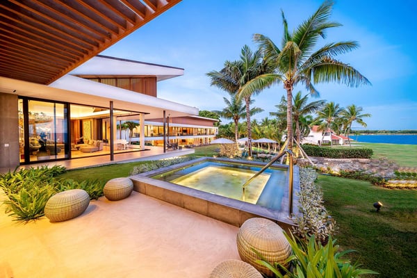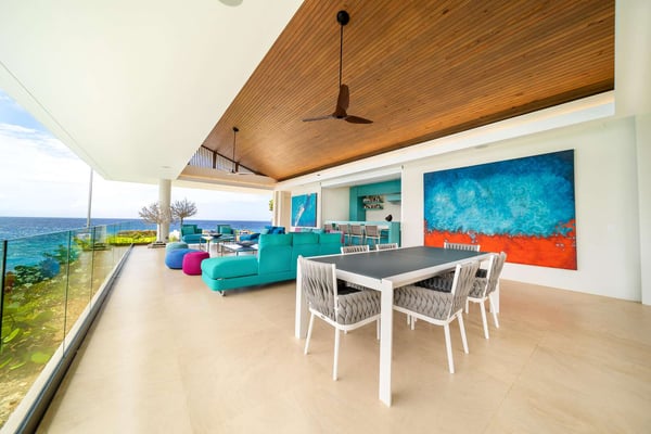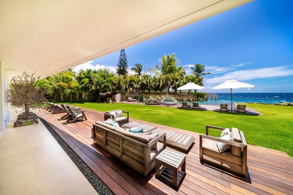 All guests must register with the Casa de Campo Concierge office, and for a small daily fee ($30 per adult per night & $15 per child per night), are granted access to resort areas and amenities. Casa de Campo Resort facilities and amenities include golf courses ($), the fitness centre ($), racquet center ($), restaurants ($) and bars ($). Contact Rental Escapes for more information about pricing. Villa Farallon, perched atop a 50-foot cliff in Casa de Campo, is an extraordinary 10-bedroom oceanfront estate offering unparalleled views of the Caribbean Sea. Located in a private and exclusive cul-de-sac, this modern luxury residence blends cutting-edge design with the beauty of its tropical surroundings. The villa’s contemporary architecture emphasizes clean lines and open spaces, with floor-to-ceiling windows that invite the stunning sea views and lush greenery inside. Expansive terraces and an infinity pool stretch along the oceanfront, creating an idyllic setting for relaxation. Lounge chairs, shaded sitting areas, and a covered dining space with a barbecue and pizza oven provide everything needed for alfresco dining or unwinding with loved ones. In the evenings, gather around the fire pit to enjoy the star-filled sky and the tranquil sound of the waves. Inside, Villa Farallon features a spacious open-plan design with vaulted ceilings and dark wood accents that enhance its luxurious yet inviting atmosphere. The main living area flows seamlessly onto the terraces, while the interiors are adorned with contemporary artwork. The villa includes two fully equipped kitchens with state-of-the-art appliances, a large formal dining room with a bar and wine cooler, a media room with seating for 12, a gym, and an office. Two ocean-facing master suites offer breathtaking views, while six additional bedrooms provide direct access to private balconies with sea views. Each bedroom has an en-suite bathroom, refrigerator, and coffee machine. Three independent apartment-style suites, complete with private kitchenettes and terraces, offer additional flexibility and privacy. The outdoor amenities are equally impressive, featuring a large saltwater infinity pool, a Jacuzzi, and a gazebo with a living and dining area. Villa Farallon is the ultimate oceanfront retreat, combining modern luxury with the serene beauty of the Caribbean for an unforgettable experience.