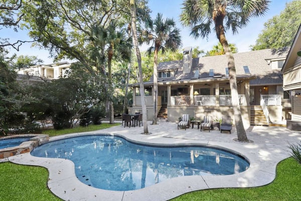 Hilton Head is a small island, popular with golfers, 95 miles from Charleston and 40 miles from Savannah, Georgia. Apart from almost 30 golf courses, it also offers 12 miles of stunning sugar white beaches, marinas and subtropical forests. Here you can hire a bike, beach comb, jog, swim or bird watch in the delightful surroundings of this beautiful tropical island. Accommodation is located on the Palmetto Dunes Plantation. As you step inside the home, the main living area offers a large open space with a wall-mounted flatscreen TV, a sleeper sofa, loveseat and armchairs, and an open floor plan great for bringing together the entire group. Just off the living room and kitchen is a formal dining room with a large table that seats six. The kitchen features stainless steel appliances, a large island for cooking, and an eat-in area with a table for six overlooking the front of the home and the pool area. Ping-Pong table in garage available!! Just off the back of the kitchen, up several stairs, is an oversized private bedroom suite with a king bed, small sitting area with a flatscreen TV and large floor-to-ceiling windows overlooking the pool. This bedroom has a private bathroom with a double vanity and a walk-in shower. Also on the first floor to the left of the living room, is a half bath and a large primary suite with king bed, flatscreen TV, glass sliding doors to the covered patio, and a private bathroom with a double vanity and an oversized walk-in shower. On the second floor, you will find three additional bedrooms. The first, just left at the top of the stairs, has a king bed, large flatscreen TV, and a private bathroom with a walk-in shower. The second has two sets of bunk beds, a flatscreen TV and a private bathroom with a shower (tub not operational). The third upstairs bedroom has a king bed, a flatscreen TV, and a private bathroom with a walk-in shower.