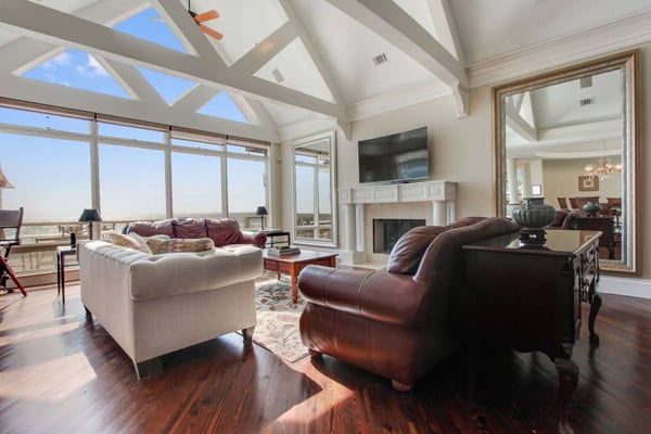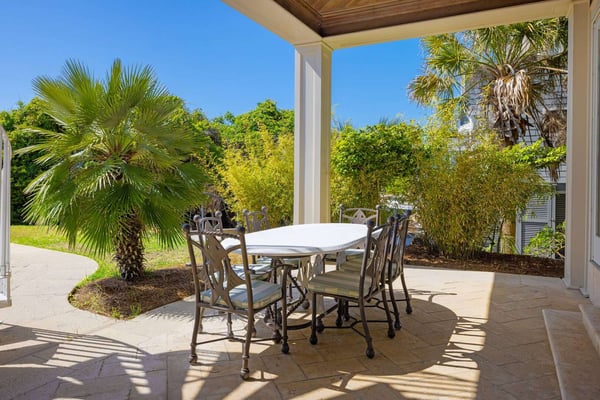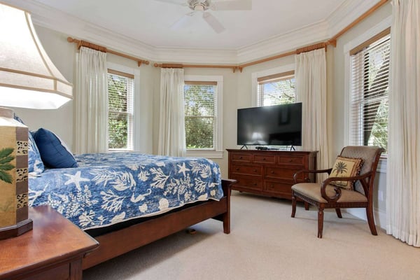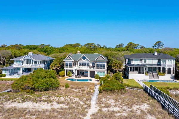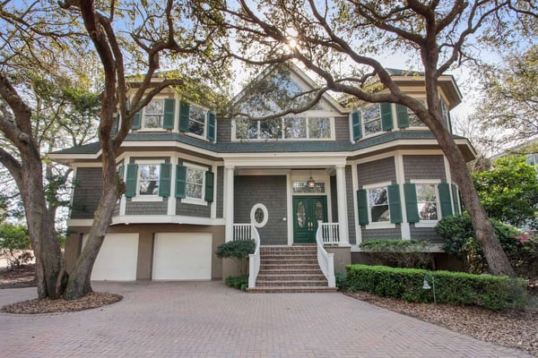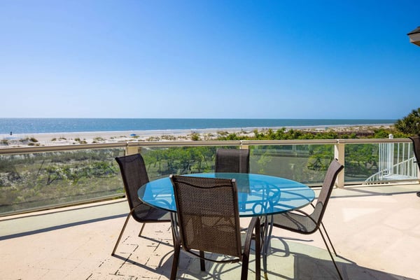 Hilton Head is a beautiful island and home to Palmetto Dunes; with its bike trails, championship golf courses, shopping, restaurants and sugar-white beaches, it is the perfect place to relax. This home is perfect for entertaining with eight bedrooms, eight and a half bathrooms, two large living areas and sitting areas with ocean views. A large pool, hot tub and outdoor seating can be found at the back of the property, along with private access to the beach. Nine steps lead you to the grand entrance of the home. Upon entering the home, immediately to the right is bedroom #1, which has a king bed, flat screen TV and a private bathroom with a shower. The second bedroom has ocean views with a king bed, flat screen TV, private bathroom with a shower. There is also a powder room in the hall between these two bedrooms. Directly in front of the entrance of the home is the living room has an ocean view, a sleeper sofa, a chair, a large flat-screen TV, a decorative-only fireplace, a bar area and a desk with an Apple computer. On the other side of the living room is bedroom three with a king bed and ocean views, flat screen TV, and access to the bathroom; this bathroom also has a washer and dryer. This bedroom also has a door that leads out to the deck/ pool area. Bedroom four has a king bed, a TV, and a private bath with a large shower. Then, to the left of the entrance, you will find seven stairs leading you to bedroom five. This room has two double beds, a flat-screen TV and a private bath with a shower. The second level of this home has spectacular views. The main living area is open plan, with a large living room leading to a balcony, perfect for alfresco dining and BBQs. The two dining rooms include a table that can seat up to ten guests and a smaller area with up to six guests. The spacious kitchen area has been recently renovated, the open-plan design makes it perfect for large family gatherings. On this level, you will find bedroom six with a king bed, flat screen TV, decorative fireplace, and a separate room with a reading chair and desk that overlooks the ocean and a private bathroom with a walk-in shower. Bedroom seven is located on this same side of the house, with a king bed, TV and large private bathroom. Also, on this second level you will find the second living room with ocean views, three sofas, flat screen TV, and a bar area with seating for four. Next is the lovely kitchen that overlooks the ocean and has a dining room table with seating for ten. The kitchen has a door that leads out to the upper-level patio. Off the kitchen, you will find another washer and dryer. 5 more steps up will take you to bedroom eight which has a king bed and a bunk bed with a trundle pull-out and a flat-screen TV. This bedroom has a walk-through closet and a full bath with a shower. Outdoors, you will find the private pool area complete with a spa, two sets of tables with seating for seven, lounge chairs and an outdoor shower. There is a spiral staircase that leads you to the second-floor balcony which can also be accessed through the inside of the home. On the second-floor balcony, there is a propane grill and a table for six. This spectacular home will not disappoint! Only two minutes away from Palmetto Dunes golf courses.