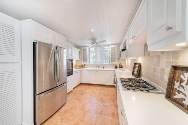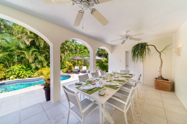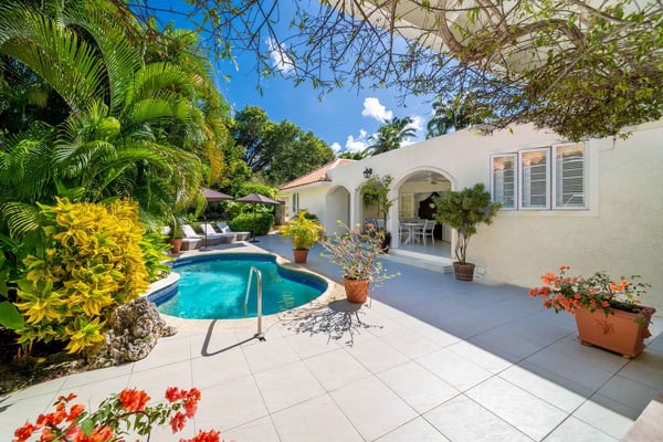 Chateau de Mar is a charming 5-bedroom holiday rental villa located on the beautiful West Coast of Barbados. This stunning property offers a serene and luxurious retreat, situated just 10 steps away from the azure waters of the Caribbean Sea. With its uninterrupted views of the sea, Chateau de Mar provides the perfect setting for an unforgettable vacation experience. As you enter through the main gate, you'll be greeted by lush tropical gardens that immediately create a sense of tranquillity. The pathway leads you up to the main house and pool deck, where you'll find a spacious and open-plan living area. The living area seamlessly flows into a fully equipped kitchen, allowing for easy meal preparation and entertaining. The kitchen is stocked with modern appliances and all the amenities you'll need to enjoy your stay. Your stay will include a housekeeper to ensure your villa is spotless throughout your stay. The main house features four well-appointed bedrooms, each designed with comfort and relaxation in mind. These bedrooms provide ample space and privacy for all guests, ensuring a peaceful night's sleep. The decor is tastefully chosen, combining elements of Caribbean charm with modern elegance. In addition to the main house, Chateau de Mar offers a delightful standalone cottage with its own bedroom. This cottage provides a secluded retreat for those seeking a bit of extra privacy or a romantic getaway. It is beautifully furnished and offers a cozy and intimate atmosphere. One of the highlights of Chateau de Mar is its outdoor spaces. There are two designated patio areas, one for dining and the other for seating offering breathtaking views of the ocean. These spaces are perfect for al fresco meals, lounging with a good book, or simply enjoying the cool Caribbean breezes. The private pool deck provides a refreshing oasis for guests to relax and soak up the sun. The villa's location is truly exceptional, with its proximity to Little Good Harbour and The Fish Pot. Guests can easily access these popular spots, which offer delicious dining options and beachfront relaxation. Whether you're interested in exploring the local attractions or simply unwinding on the beach, Chateau de Mar's location is ideal for both relaxation and adventure.