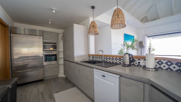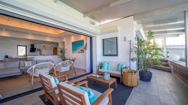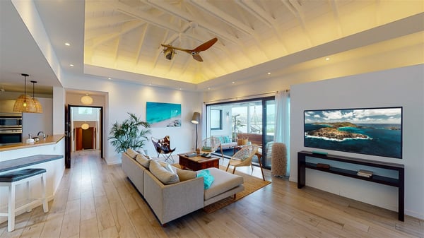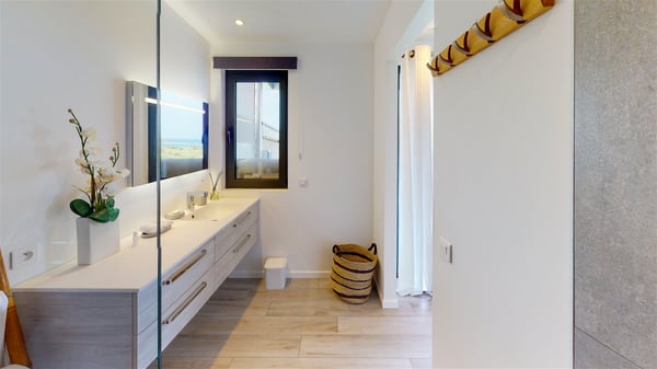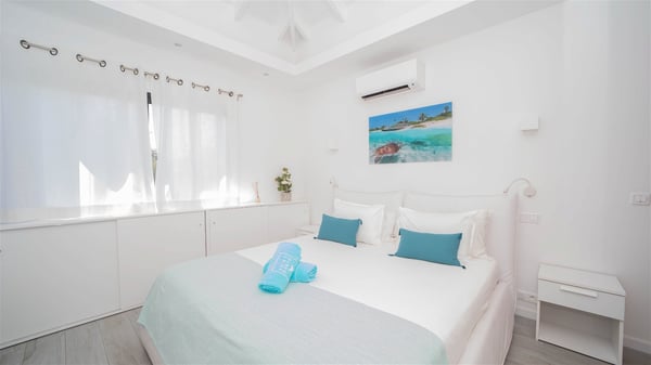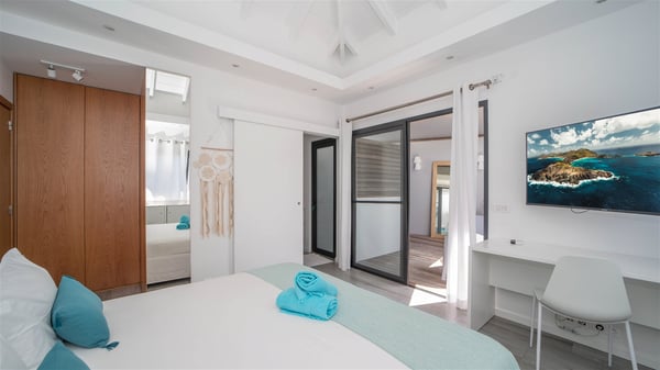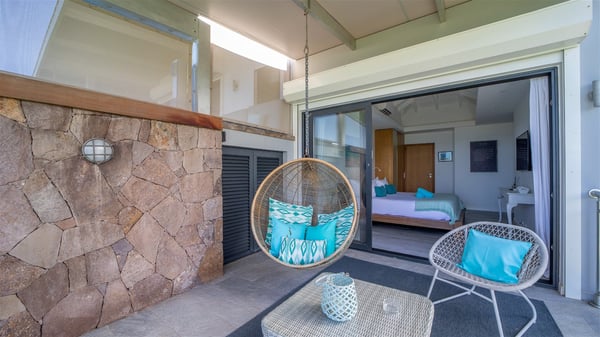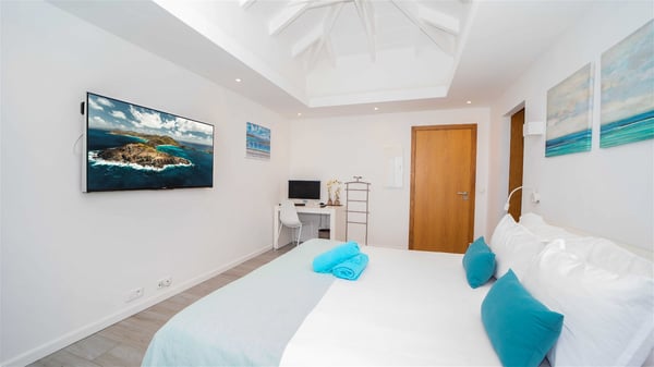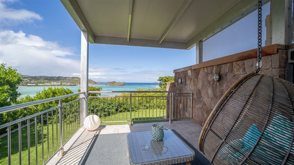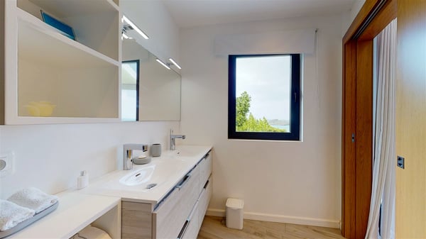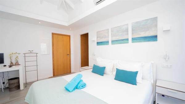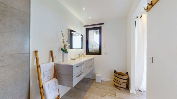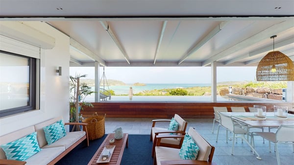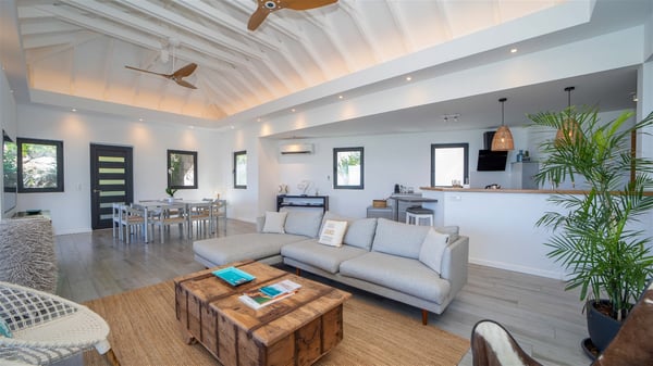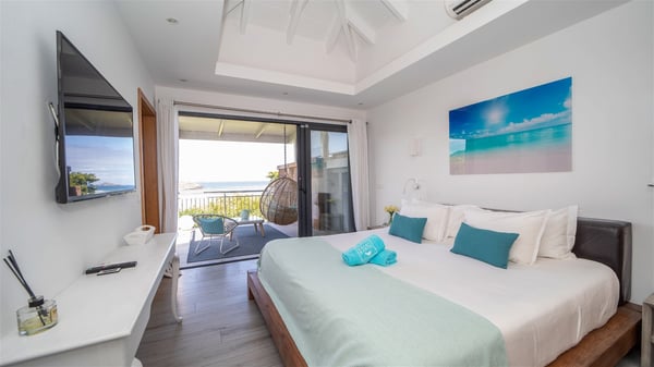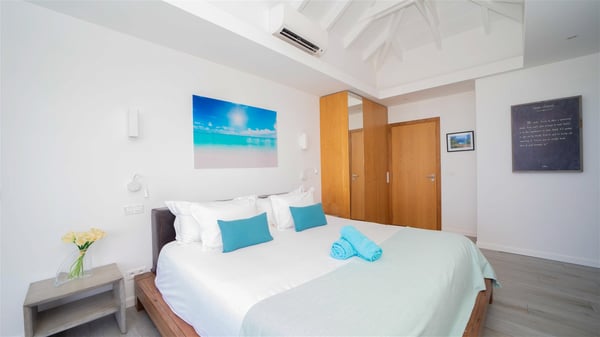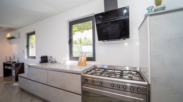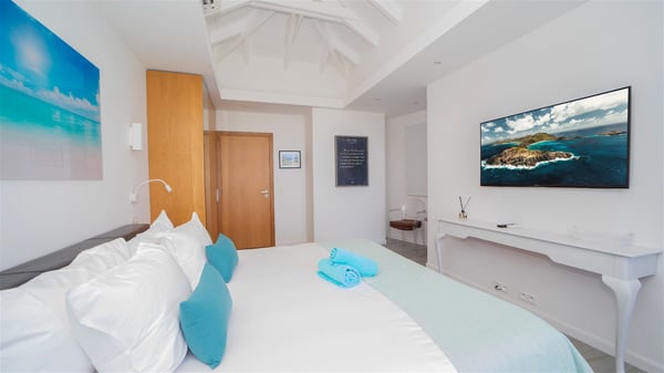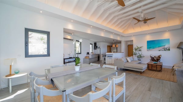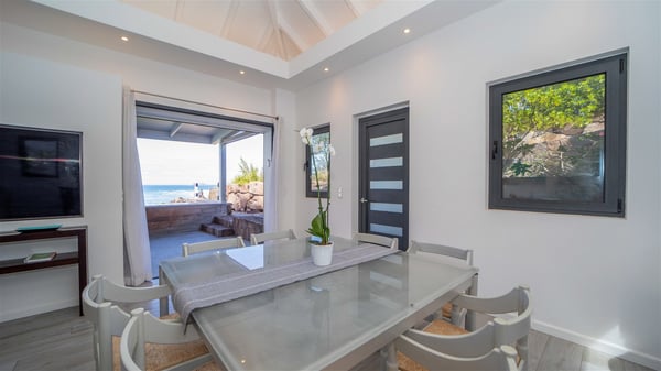 The vacation rental villa YOLO is a beautiful property located in Grand-Cul-de-Sac in front of the crystal-clear waters of St. Barths. Spacious and luxurious, this three-bedroom holiday home offers a wide range of upscale amenities in a romantic and natural setting, the perfect place for a stay with family or friends in the Caribbean beauty. Villa YOLO in St-Barth is a contemporary-style holiday rental built over two levels in front of a breathtaking ocean view. Nestled on the hillside above the bay of Grand-Cul-de-Sac, this amazing property features beautiful indoor spaces, with a fully air-conditioned living room consisting of a lounge with comfy sofas, as well as an indoor dining room that can accommodate eight guests. The light-wood parquet floors are brightened by the strikingly white walls with fine hints of colors in a welcoming atmosphere, in front of the openings onto the terrace with swimming pool and the deep blue ocean. In a most relaxing ambience, villa YOLO is a daydream, restful place to stay. At the front, YOLO’s terrace features a splendid infinity swimming pool in front of the incredible lagoon below. A second outdoor dining area for eight guests as well as a garden lounge are located under the covered area which runs alongside the living room, for fantastic moments in the gentle trade winds. A fine lawn area is also set up with comfortable loungers for pleasant sunbathing sessions in St. Barths’ sun. You will love spending time watching the perfect horizon, in the heart of the natural St-Barths’ beauty. What’s more, hiking trails are available near the villa whenever you wish to explore the Caribbean wild beauty. The vacation rental villa YOLO in St. Barths consists of three air-conditioned bedrooms with en-suite bathrooms over two levels. Located on the main level, two of them open onto amazing ocean views that can be enjoyed from the bedrooms’ private terraces. The third one is on the lower level and opens onto a lovely, well-appointed terrace overlooking the tropical garden, in an idyllic vegetal atmosphere. Located close to the lagoon and its many water activities, the holiday rental villa YOLO is the perfect place for an unforgettable vacation in St. Barths.