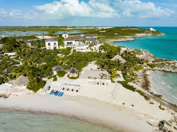 Experience the beauty of the Turks & Caicos in the estate formerly owned by Prince. Sitting on a large peninsula that feels like its own island, Emara provides you with the privacy you will not receive anywhere else on the island. Inside the gated 20,000+ square foot, seventeen-bedroom, eight-acre estate, you will be accommodated with the utmost privacy from a private beach. Emara offers its guests an exclusive luxury experience with the feeling of home away from home, and a signature blend of privacy and personalized service. On one side of the peninsula, you have waves crashing against the cliffside. On the other, a gentle bay perfect for snorkelling, paddleboarding, or just playing in the sand. Each room in Emara is carefully curated with design and comfort in mind. From the infinite shades of blue, to the astonishing sunsets, you will find beauty in every corner of the property. From paddleboard rides across the clear turquoise waters, the fun amenities at Emara are endless.