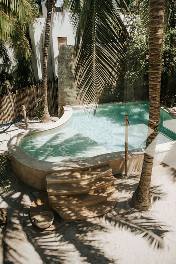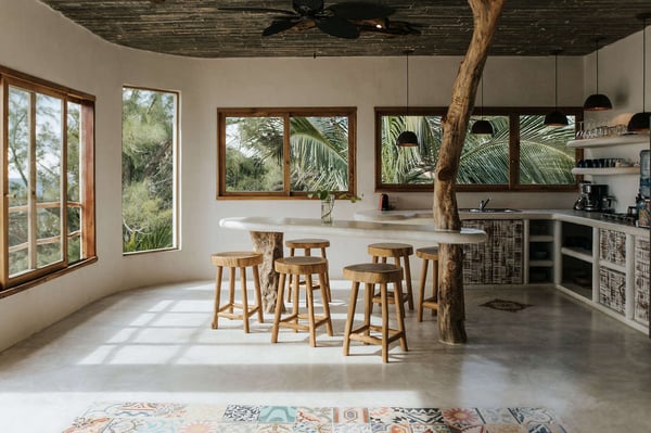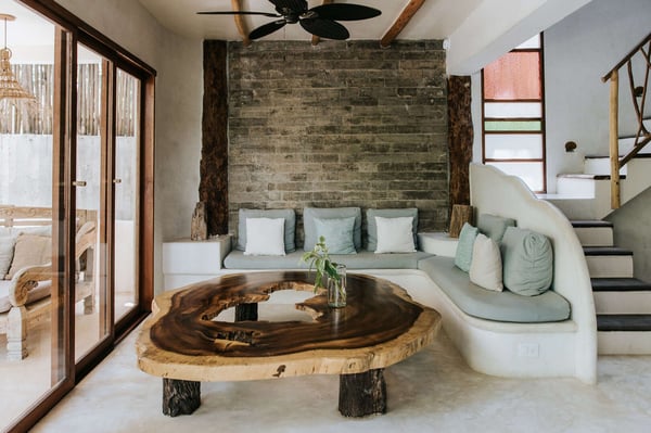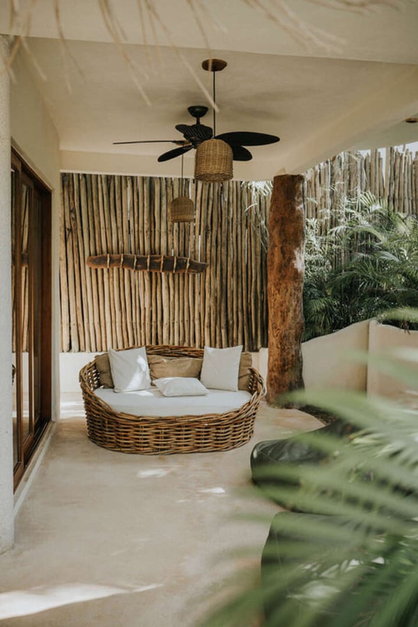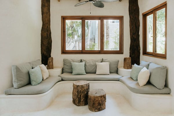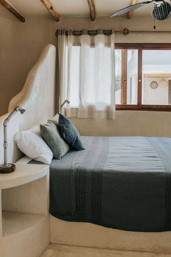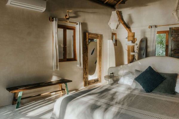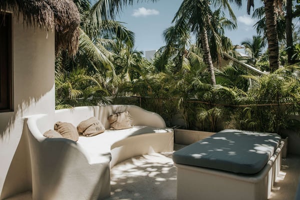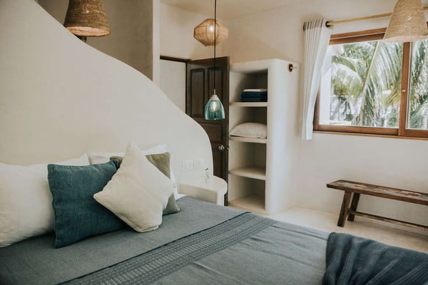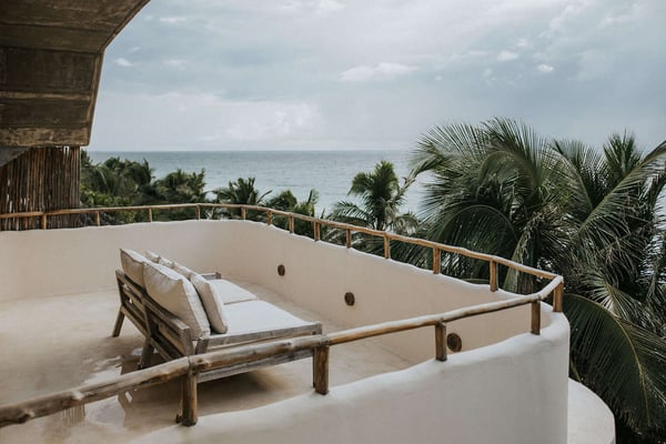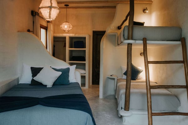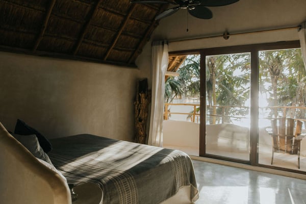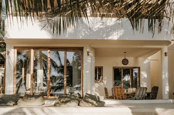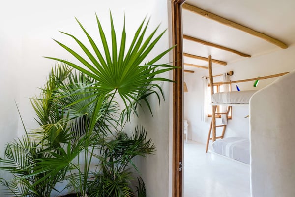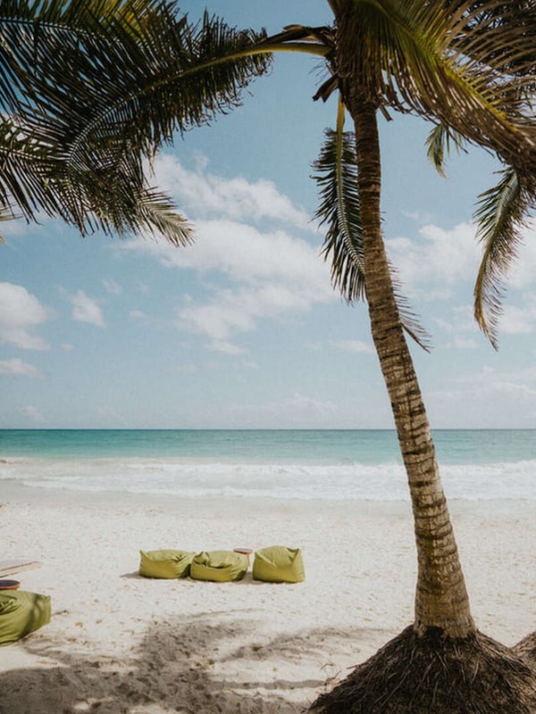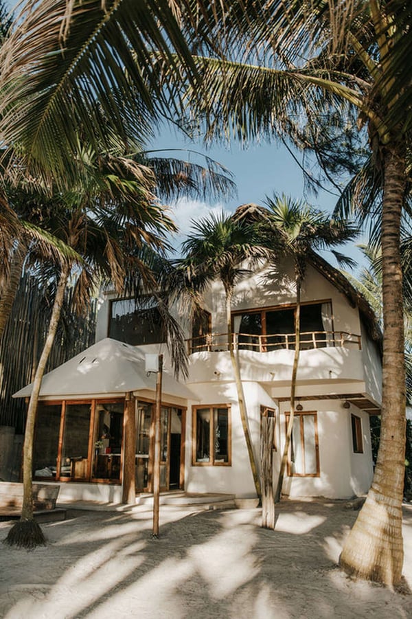 Zorba enjoys a premium location on the beach in the boutique hotel area of Tulum, Mexico. Each villa is private yet enjoys full use of the pristine white sand that connects from your doorstep to the loungers and poufs on the beach. Gather with friends to watch the sunrise out of the sea or venture to the rooftop for sunsets over the jungle. Wander the beach to world-class restaurants and explore boutiques and shops with ease. Spend the day relaxing and enjoying the incredible turquoise sea, the Zorba swimming pool with a wall of gently falling water, private yoga classes in the studio, and authentic food and handcrafted cocktails from our onsite Taco & Breakfast Bar. Fast fiber optic wifi speeds allow guests to stay connected during their stay. Staff is onsite to provide daily housekeeping, rake the beach and property, and care for our guests. Zorba Homes: Zorba Uno, Zorba Dos, Zorba Tres, Zorba Cuatro, Zorba Cinco + Zorba Penthouse.