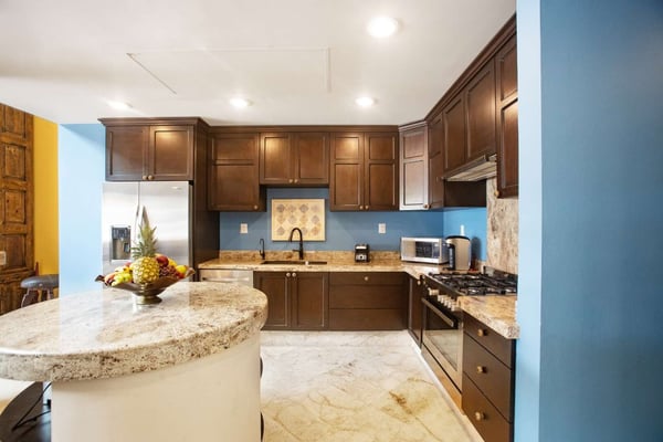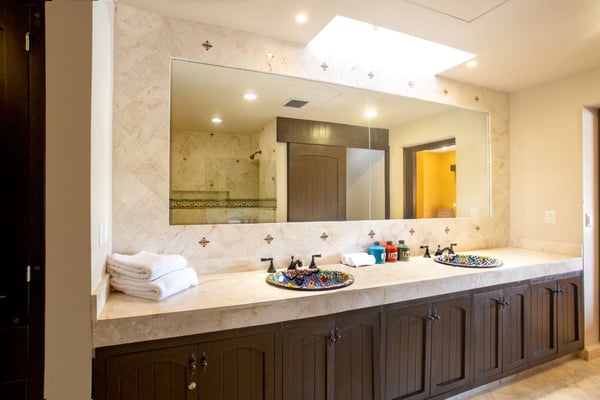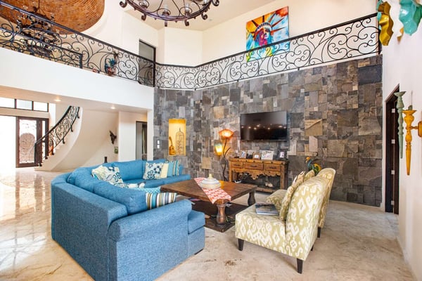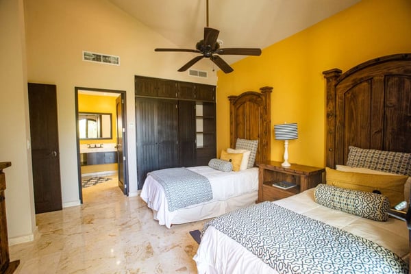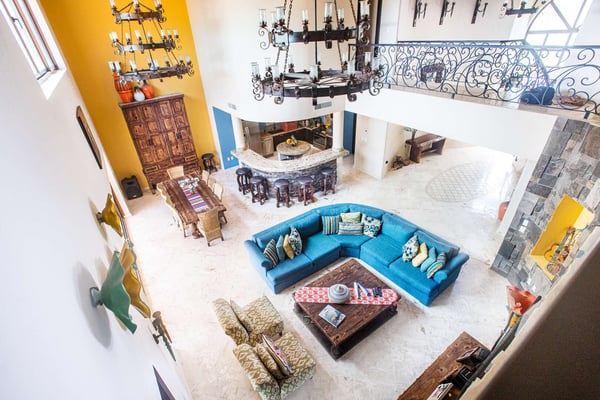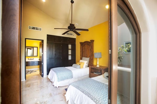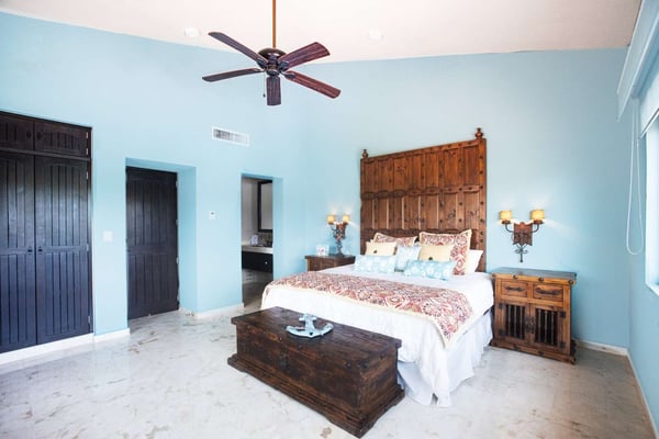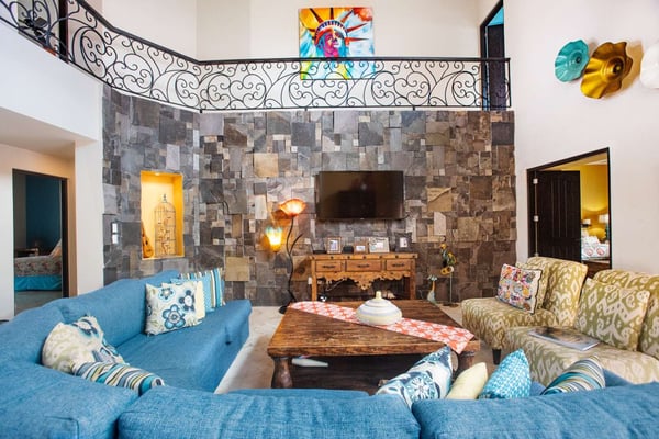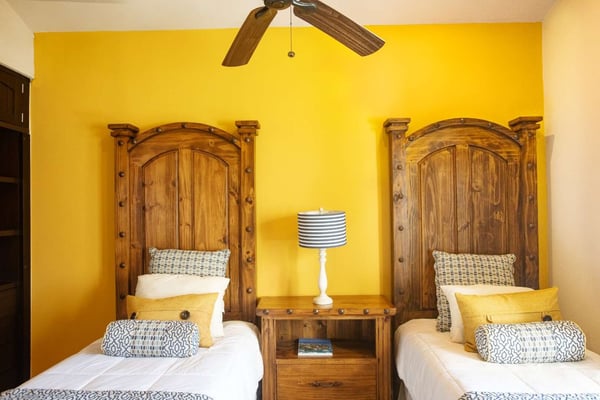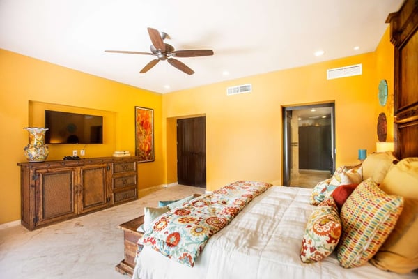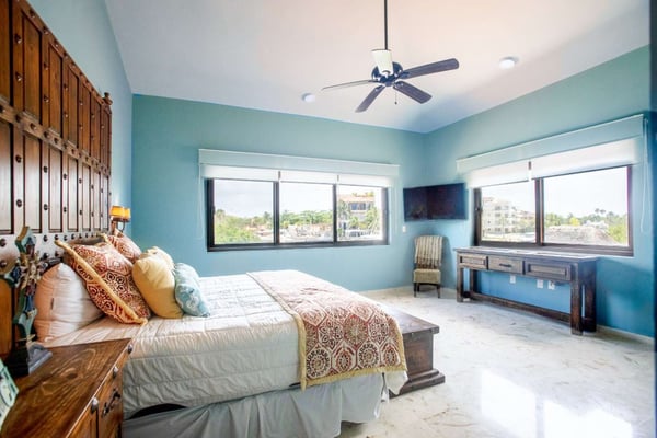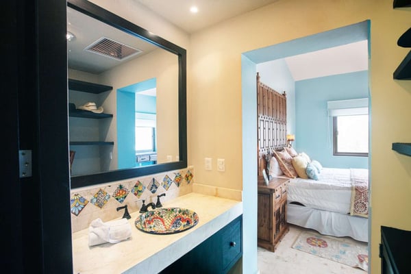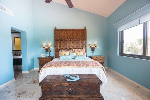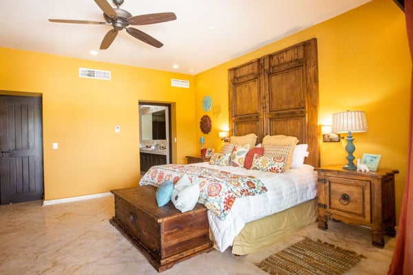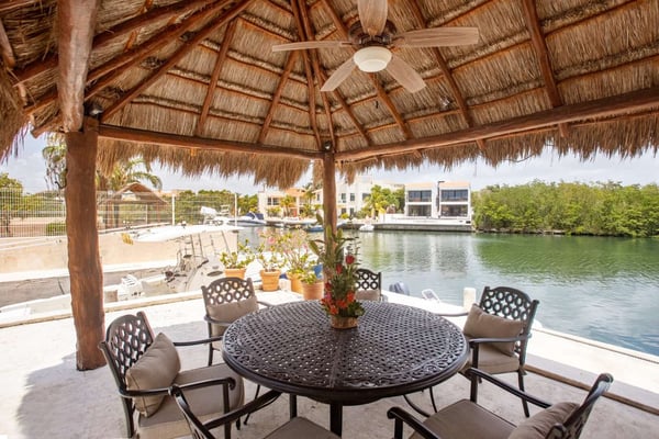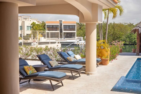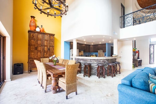 Whether you are coming to enjoy nature in the Riviera Maya or to disconnect from your daily life Casa Yanten offers the perfect scene. This hacienda-style villa strikes you with its high ceiling, beautiful blacksmith chandelier, and lively Mexican colours. You will find this villa comfortable to travel with friends or family. Five suites with luxury amenities including an ensuite bathroom in each bedroom. Four of them with king-size beds and one with two twin beds. The spacious open-plan living room and dining room will be the place to meet and have time to be together and enjoy tasteful meals or comfortable sofas when having an exciting conversation. The fully equipped kitchen has everything you need to prepare your own meals or hire a private chef to delight your palate. Enjoying your morning coffee while listening to the birds singing with the view of the natural canal, and feeling the ocean breeze will be your favourite routine on the outdoor terrace. For the more intrepid the pool and kayaking on the natural canal or on the ocean will be their favourite playground. Let us be your refuge in Puerto Aventuras one of the most exclusive and safe gated communities in Quintana Roo!