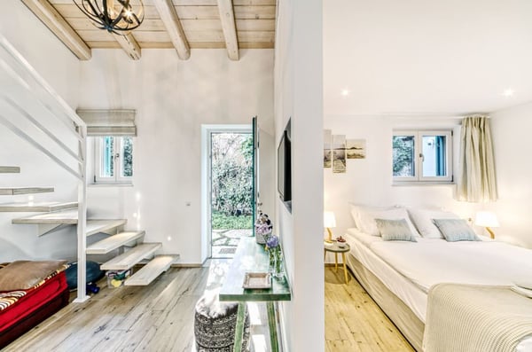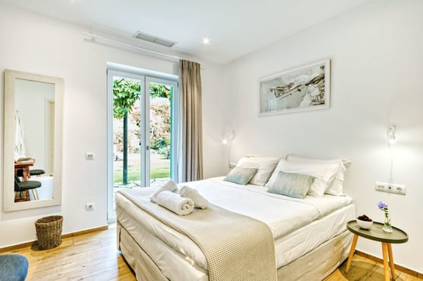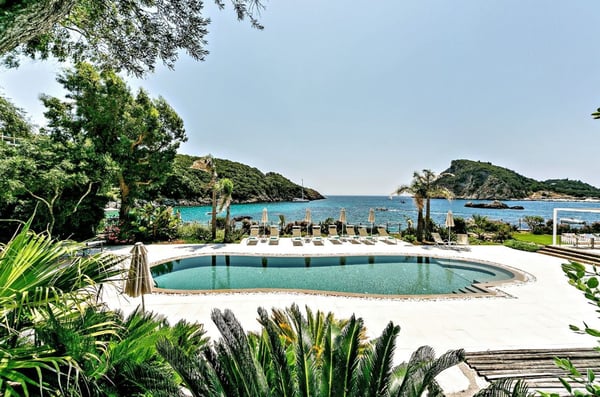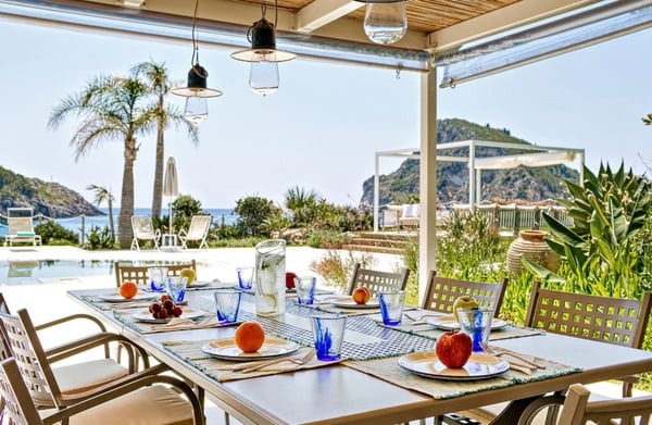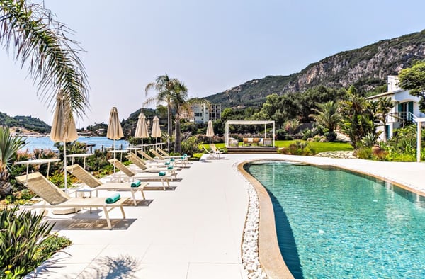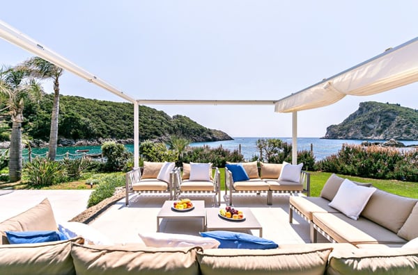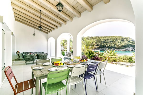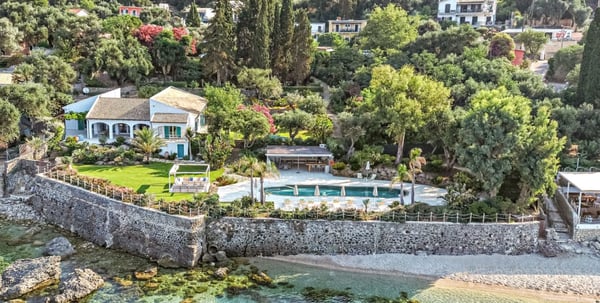 Set against an imposing rocky backdrop overlooking a pretty bay along Corfu's west coast, and surrounded by magnificent Mediterranean gardens, this fabulous beach house with a private pool is close to restaurants and all amenities. Fully renovated in recent years this five-bedroom property welcomes up to twelve guests with the accommodation distributed between a main house and a charming garden annex with an independent entrance. Lush Mediterranean gardens surround the property with mature plants and lawn areas. Private, shaped swimming pool (Roman steps and ladder, jacuzzi area), outdoor shower, sunbathing terrace with sun loungers and parasols, gazebo with outdoor lounge furniture, shaded dining area, BBQ and Pool Bar Kiosk, table tennis, stunning gardens with sea views. Children's play area, outdoor firepit. Direct access to the beach and the sea at the bottom of the garden.