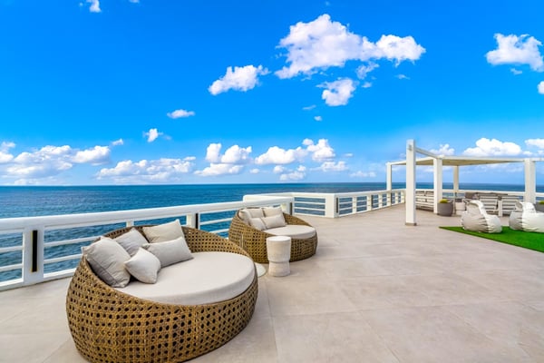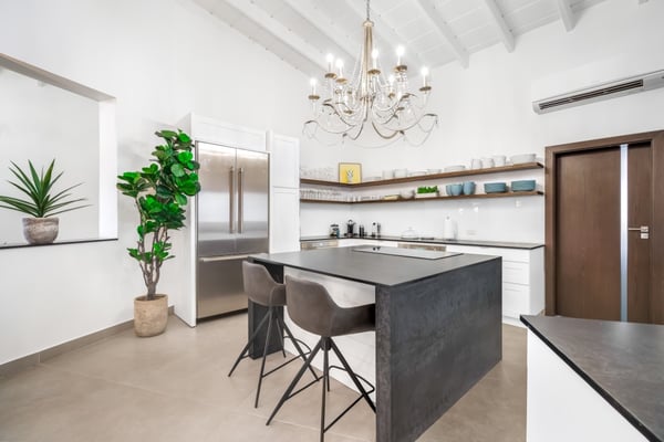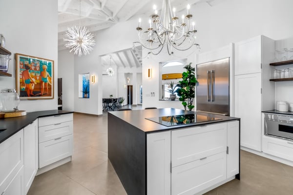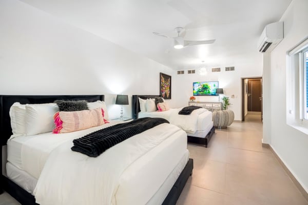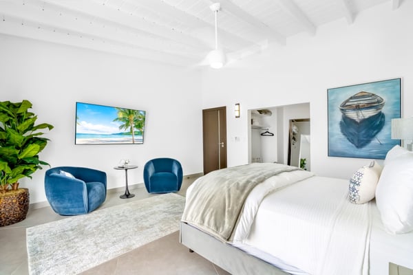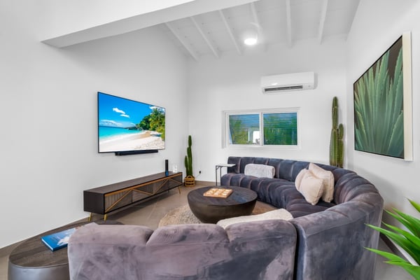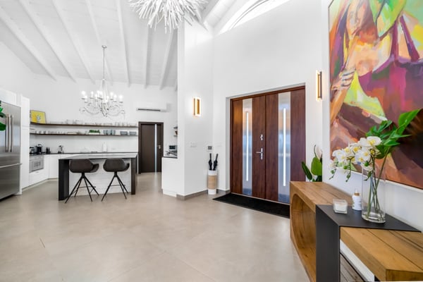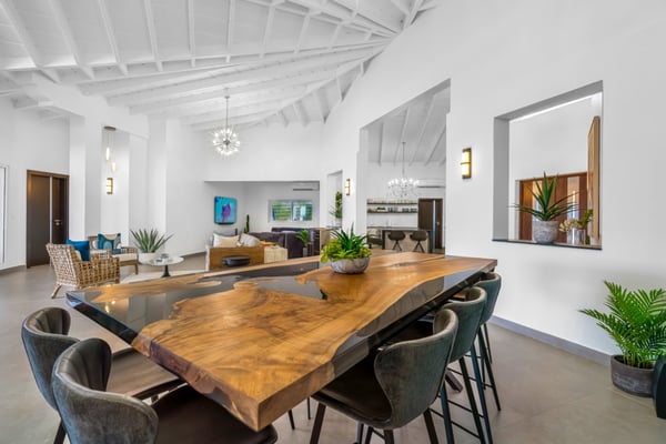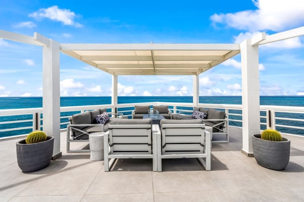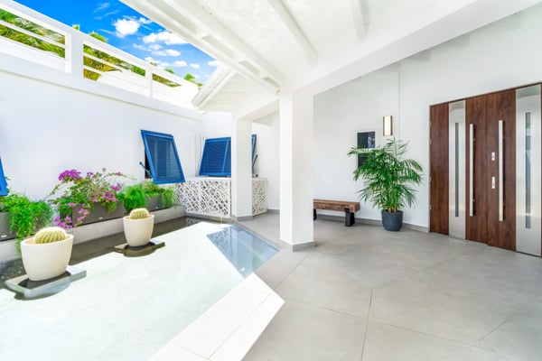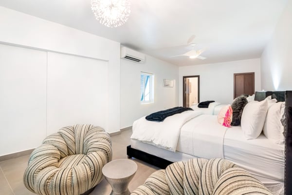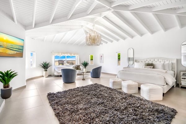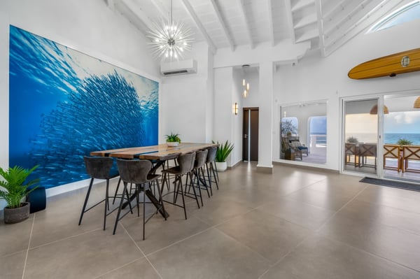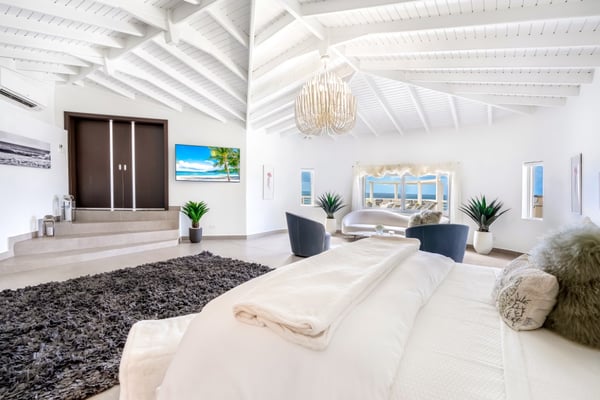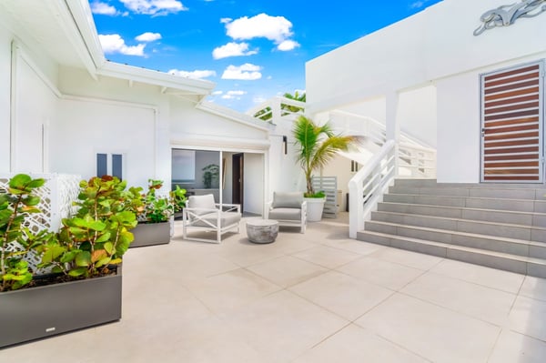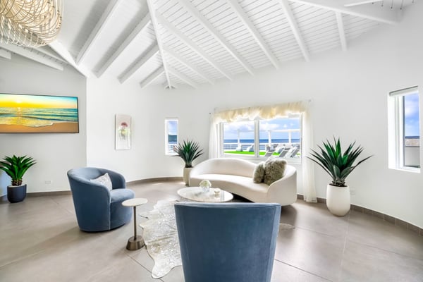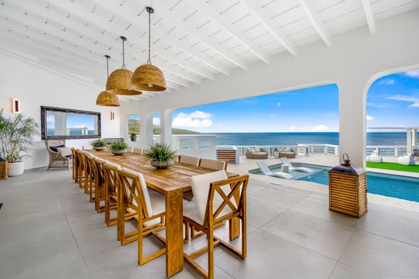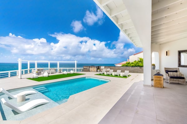 Stay in style and luxury at our six-bedroom villa on the Dutch side, perched on St. Maarten’s Pelican peninsula, surrounded by stunning mountains and ocean views of the Caribbean and the Atlantic. (The Villa also has a view of the Caribbean islands St. Eustatius and Saba). This walled, coastal contemporary complex has resort amenities offering the ultimate in luxury, privacy, comfort, and island ambiance.