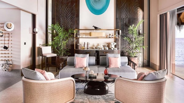 Featuring a living room that overlooks the sparkling waters of the Indian Ocean and a curated library, this private paradise can accommodate up to three guests. Savour sun-kissed pleasures all day long at the spacious sundeck and tranquil infinity pool. Thoughtful amenities and a state-of-the-art home and lighting system create an enchanting over-the-waves luxury resort experience, unparalleled in the Maldives.