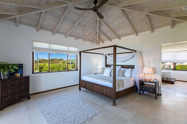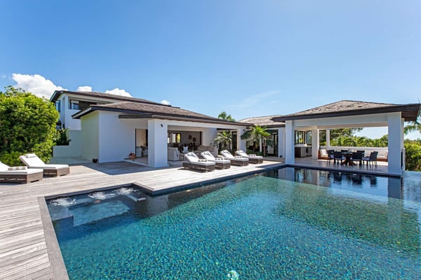 Sundeck is a gorgeous villa located in an ideal location along Westmoreland Ridge. There are five spacious en-suite bedrooms with air-conditioning, rain showers and views across the ocean and the golf course. The master bedroom features a sea-view private patio, a walk-in wardrobe, rain shower and a free-standing bath with views across Westmoreland Golf Course. Sundeck Villa blends tropical immersion and sleek design in this exceptional location in St James, Barbados. A villa with exceptional views across the Caribbean Ocean. The five bedrooms feature four-poster beds or private terraces, with white company products provided throughout. There is a well-equipped fitness room. We are delighted to offer this sophisticated villa with sun loungers and membership at the Royal Pavilion Beach Club.