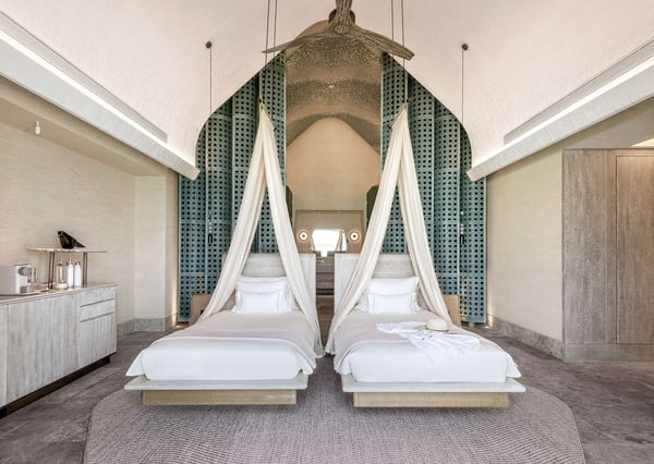 Blending the brilliant blues of the ocean with a clean and modern palette, this luxurious two bedroom ocean villa defines the ultimate Maldives overwater experience. Ideal for up to five guests, your wellbeing villa offers a 33 square metre infinity pool and expansive indoor-outdoor spaces.