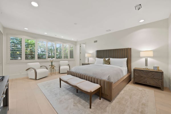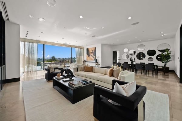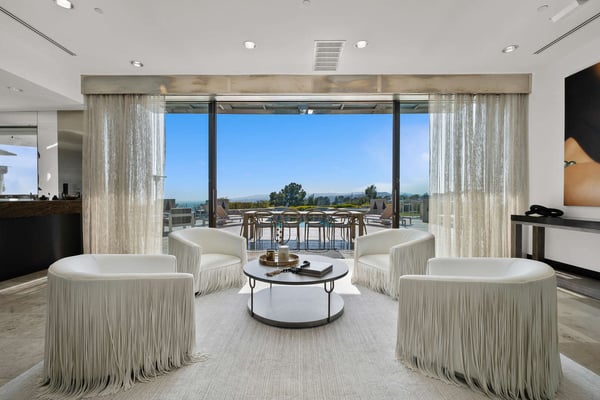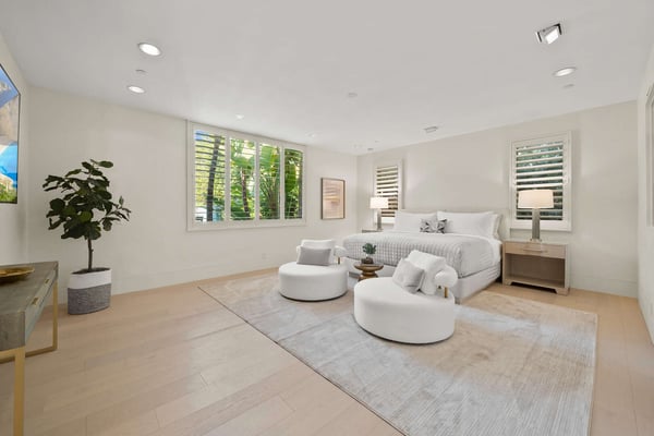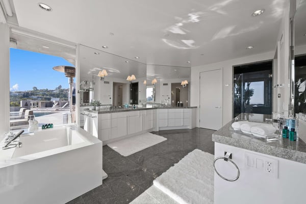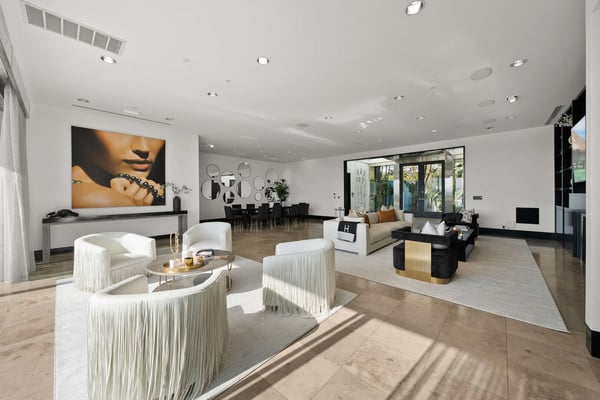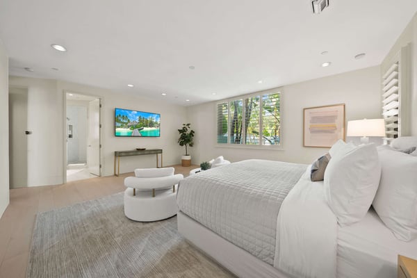 Astonishing and dramatic, the Modern Muse Residence offers a custom-designed, cutting-edge media room capable of accommodating an audience of ten. The gourmet kitchen, conducive to epicurean pursuits, effortlessly merges with the garden and seamlessly connects to the adjacent family room or den. Four generously appointed bedrooms, each boasting an en-suite bathroom, grace this remarkable haven. The extraordinary primary suite, with its eternal vistas, graciously opens up to the enchanting garden. His and her walk-in closets provide ample space for sartorial indulgence, while the sumptuous bathroom, complete with a luxurious soaking tub, promises a sanctuary of relaxation. Two additional guest bedrooms, also equipped with en-suite facilities and commodious walk-in closets, offer unparalleled comfort. Completing this opulent domain is a powder room, ensuring convenience for guests. The two-car garage, conveniently accessible from within the premises, comes equipped with a direct entrance and a 50-amp car charger, catering to the needs of the automotive enthusiast at the Modern Muse Residence.