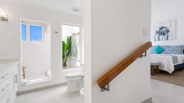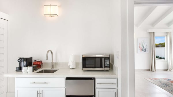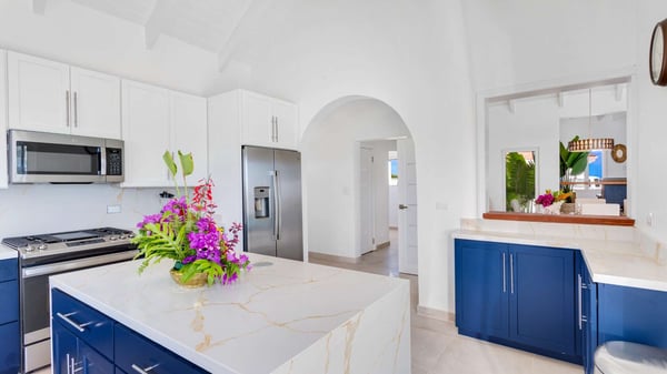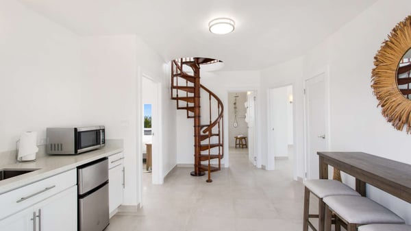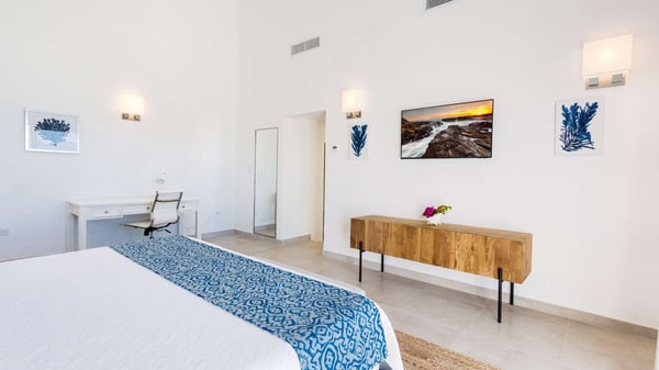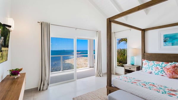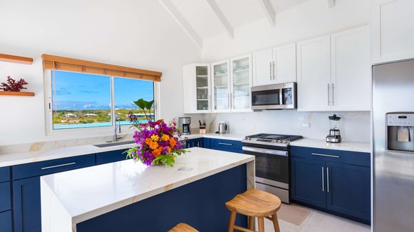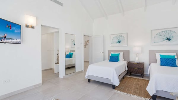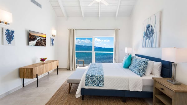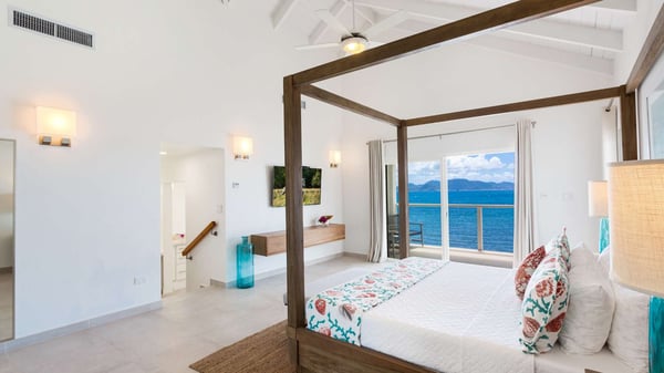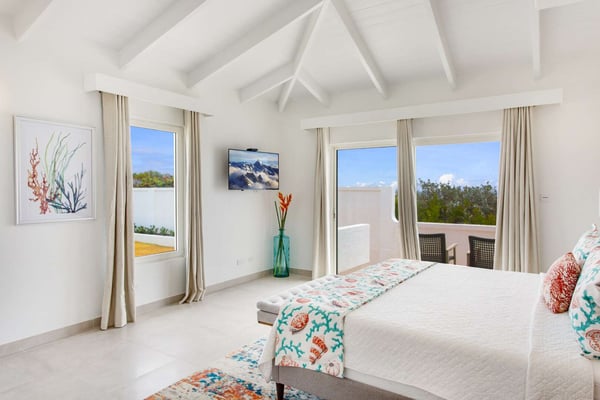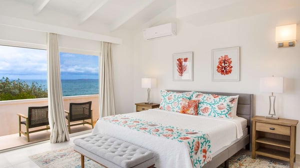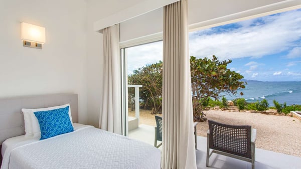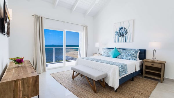 Villa Angel Point is a luxurious five-bedroom retreat on Anguilla's tranquil Caribbean coast. Completely renovated in 2023, this contemporary villa in Anguilla offers breathtaking views of St. Martin from its sun-soaked terraces, furnished with comfortable loungers and sofas surrounding the private pool. The poolside area is an oasis of relaxation with covered seating, a barbecue grill, and ample space to unwind. For the adventurous, kayaks and paddleboards are available to explore the nearby Little Harbor beach, just a short paddle away. The villa seamlessly blends indoor and outdoor living with floor-to-ceiling sliding doors that invite the refreshing ocean breeze. The spacious common area features two living rooms, perfect for entertaining, and a modern kitchen equipped with high-end appliances. Guests can enjoy meals at the custom wooden dining table or al fresco on the harbor terrace. The villa comprises two separate houses, each with three generously sized bedrooms. Conveniently located in Little Harbour, Angel Point is just minutes from the ferry port, airport, adjacent villas such as Indigo Villa, and island attractions like golf and tennis. It’s the ideal escape for those seeking tranquility and luxury in a stunning Caribbean setting. Angel Point is divided into two parts, the main house and the bungalow. This increases your privacy and expands its capabilities.