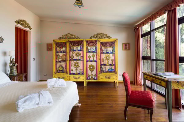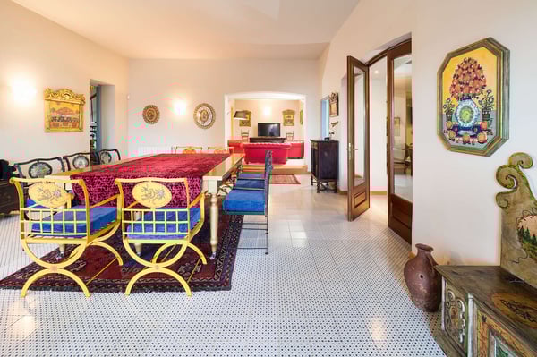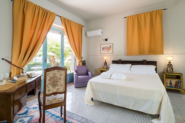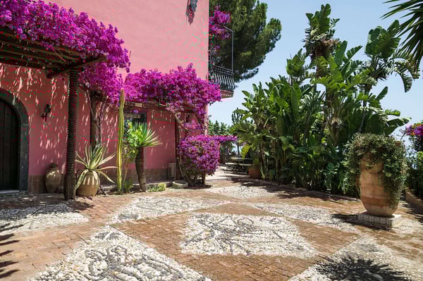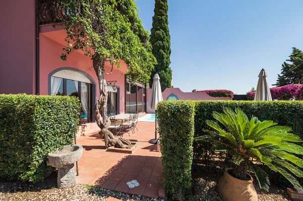 La Boheme is an exclusive villa with a private swimming pool located in the heart of Taormina. Refined and prestigious, this stunning property is just a stone's throw from the Greek Theatre and Corso Umberto, as well as an array of chic boutiques, fine restaurants, and vibrant clubs in Taormina's bustling center. Overlooking a lush garden and sparkling pool, La Boheme boasts several well-appointed outdoor spaces perfect for alfresco living. Elegantly designed with meticulous attention to detail, the villa exudes authentic Sicilian charm, showcasing traditional ceramics and antique furnishings. The villa spans two levels, offering spacious and comfortable interiors. The ground floor includes a bedroom with an en-suite bathroom, a generous living area featuring a TV-equipped sitting room, a lounge with a large screen and projector, a study, a dining room, a fully equipped kitchen, and a guest bathroom. Two staircases from the living room lead to the first floor, which houses four romantic bedrooms, each with its own bathroom. All rooms are equipped with air conditioning for ultimate comfort. Modern amenities include wireless internet access, satellite TV, a washing machine, a dishwasher, and central heating, ensuring a seamless stay. The nearby beaches of Mazzarò and Isola Bella are easily accessible by car or cable car, while Catania, the picturesque villages on the slopes of Mount Etna, the Alcantara Gorges, and the charming seaside towns along the Cyclops Riviera are just a short drive away. CIN: IT083097C280NPEFY8