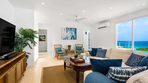 Villa Fiore is a luxurious four-bedroom retreat offering privacy and elegance in Anguilla. Just a short stroll from the pristine Shoal Bay East, this Anguilla villa rental boasts stunning panoramic views of the crystal-clear Caribbean Sea. Its convenient location near its adjacent villa, Alkera, and Little Bay provides easy access to the vibrant beach life while maintaining a serene atmosphere. The villa’s modern, airy interior seamlessly blends indoor and outdoor living spaces. A fully equipped kitchen is a chef’s dream, while the expansive terrace is an outdoor oasis. With an infinity pool, multiple seating areas, and a covered terrace with a barbecue, it’s the perfect place to relax and entertain. The primary suite is a luxurious retreat, offering breathtaking views of Shoal Bay from its private terrace. The second primary bedroom also boasts stunning ocean views and direct access to the pool terrace. Two additional bedrooms, each with private terraces and en-suite bathrooms, complete the accommodations. Villa Fiore offers an unforgettable getaway, combining opulence, comfort, and the beauty of the Anguilla coastline.