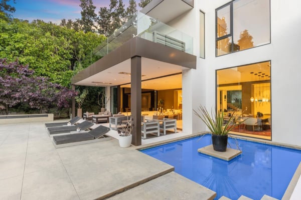 This property is only available for monthly stays with a minimum of 31 nights. If you are interested in short-term stays, please contact our Villa Specialists for your luxury travel needs. Set behind gates surrounded by tall hedging and abundant greenery, Lago Vista Modern is supremely set in the highly coveted 90210 zip code of Beverly Hills. A true display of luxury showcasing 12,800 square feet of sleek design and exquisite finishes on two parcels of land totalling over an acre. Operated by a fully integrated Crestron System personalized to your lifestyle, the seven-bedroom, eleven-bathroom home offers an unparalleled living experience. From both levels throughout the home, expansive walls of glass vanis,h offering seamless indoor/outdoor living. Custom features include two floating staircases, 33 floor-to-ceiling Rimadesio Italian glass magnetic doors, an elevator with custom bank vault doors, a spectacular 6-foot Mooi chandelier, all custom-sized and hand-knotted carpeting, Nano Glass, and a scratch and stainproof stone composite slab on the main level and all baths. Outfitted with all top-of-the-line appliances, the chef's kitchen is second to none. Additional first-class amenities include a custom 600-bottle wine cellar, a large home movie theatre, a gym, and a personal office offering views of the beautiful grounds. Both an entertainer's vision and a private oasis, the outdoor space encompasses a large grassy yard, a stunning pool with a Baja shelf, spa, multiple water features, fire features, an outdoor kitchen, dining space and built-in ceiling heaters. Please Note: Due to manufacturer or user error, we cannot guarantee that the elevator will be in service. Please advise prior to booking if elevator usage is mandatory for your stay. Cellular reception in the area may vary depending on your provider. To ensure a seamless experience, we recommend downloading Google Maps offline before your arrival. By saving the area in advance, you can easily navigate and access directions even without cellular service or Wi-Fi. This will help you get around with ease during your stay. Please Note: No garage access.
