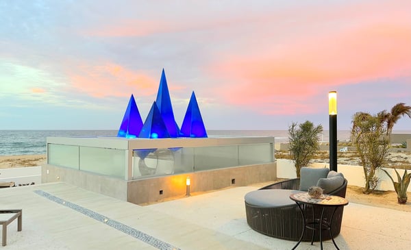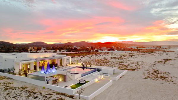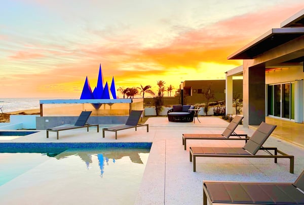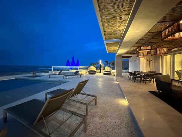 Villa Zafiro is a villa at Lighthouse Point Estates, Baja. For the most discriminating traveler, this unique property sits along a three-mile pristine and swimmable beach approximately 25 meters from the rolling surf. The water sports opportunities are incomparable. Few vacation homes anywhere in the world will provide such expansive opportunities in ocean activities while allowing daily views of kaleidoscopic sunrises and sunsets from the same pool patio.