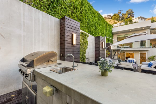Located in the heart of the Hollywood Hills, on a quiet street just minutes away from the Sunset strip, this modern newly remodeled luxurious Villa is the perfect dream escape. Elegant and modern in the hills with beautiful city views. 4 bedroom & 5 bathroom home with a full backyard overlooking city views and complete with a pool, spa, BBQ & firepit. The main level consists of a living room, dining area, powder room, guest bedroom with en-suite bath and a stylish kitchen equipped with Miele appliances, Italian cabinetry and stone & glass countertops. The lower level consists of a luxurious primary bedroom with a chic custom-designed walk-in closet, a master bath with a steam shower, two guest bedrooms with en-suite baths and a laundry room. Both levels include multiple sliding glass pocket doors for an abundance of light and visibility as well as exquisite stone fireplaces. Enjoy the convenience of 4 parking spots in your two-car garage and gated driveway. New Registration ID: HSR25-000807