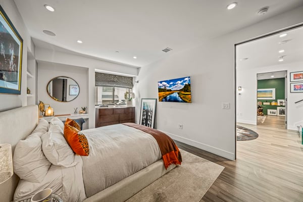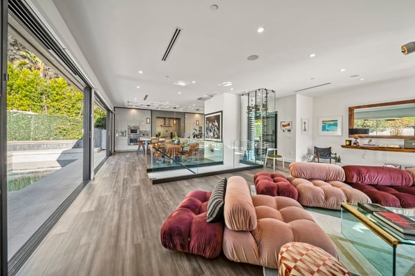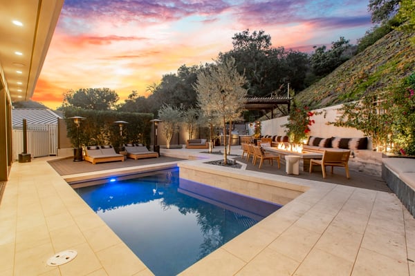 Perched in the prestigious Hollywood Hills awaits this luxurious, brand-new construction, with unprecedented finishes! Seamless modern design with soaring heights, floor-to-ceiling windows, and tranquil mountain views! 5 bed, 5.5 baths on a multi-level design, cinema room and wine cellar, embracing the endless open concept of indoor to outdoor living. The lavish master suite boasts private terraces, a master spa embodying an oversized steam shower, soaking tub, and explosive mountain views! A sleek master chef's kitchen has custom contemporary finishes and an expansive center island with top-of-the-line appliances. Harmonious connection to the exceptional living room, dramatic fireplace, dining/family room, and terraces flawlessly opening to outdoor grounds. Immerse in the resort-like outdoor living with a well-appointed saltwater Baja pool, fire pit, and splendor bistro patio. This sophisticated home is a perfect combination of a serene lifestyle & an unparalleled entertainer retreat with customized convenience! Made for an absolutely idyllic setting with complete privacy with canyon views, perfect for your custom dream palace. Please Note: Due to manufacturer or user error, we cannot guarantee that the elevator will be in service. Please advise prior to booking if elevator usage is mandatory for your stay. No primary closet access. HSR25-002620