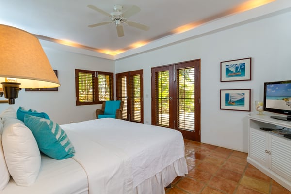 Beach Palm Villa is a luxurious two-bedroom retreat literally steps away from one of the world’s best beaches – Meads Bay. This exceptional villa is within walking distance of many of the West End’s gourmet restaurants, five-star hotels, and spas. Beach Palm Villa is undoubtedly one of Anguilla’s most conveniently situated vacation homes. Its exceptional location is just steps away from stunning Mead’s Bay Beach – two miles of glorious powder white sand – where lounge chairs and umbrellas for the exclusive use of the villa’s guests are available. Mead’s Bay is also the home of many of Anguilla’s most popular restaurants – including Blanchard’s Beach Shack, Jacala and Straw Hat and the five-star Malliouhana Hotel. The villa is also within a five-minute walk of the pristine and deserted Long Bay and other popular west-end beaches like Barnes Bay, Shoal Bay West, Maunday’s Bay, and West End Bay. There is a large supermarket three minutes' drive away also. This charming contemporary Caribbean villa offers guests exceptional privacy and space as it is situated in half an acre of tropical gardens and boasts a pretty, private pool and luxurious sunbathing terrace. The architect-designed property is comfortably furnished and benefits from partial sea views, vaulted ceilings, and great natural light. Twin Palms Villa’s guests benefit from dedicated sun loungers and umbrellas reserved exclusively for them on a prime spot on Mead’s Bay beach. Villa guests are also able to enjoy complimentary use of the Tennis Courts at nearby Carimar Beach Club. Two air-conditioned garden view bedrooms (one king/one twin that can be made up as a king) both with en suite bathrooms, private terraces, and ceiling fans. Half bathroom on the main floor. Beach Palm Villa can be combined with its sister property a bedroom Coconut Palm to create a spacious 5-bedroom villa estate. The villas are situated in a large, walled estate where mature gardens, clever landscaping, and walkways separate and provide privacy for the two properties.